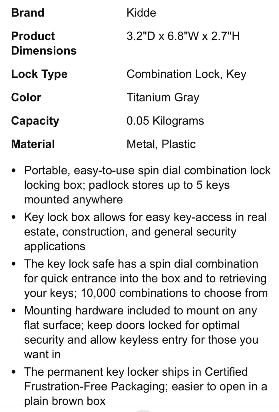 Kidde Access Point Wall Mount Lock Box KeySafe Original 5-Key Permanent Spin Dial, Keyless, Titanium Gray New in box. Never used. Unmatched quality and security.