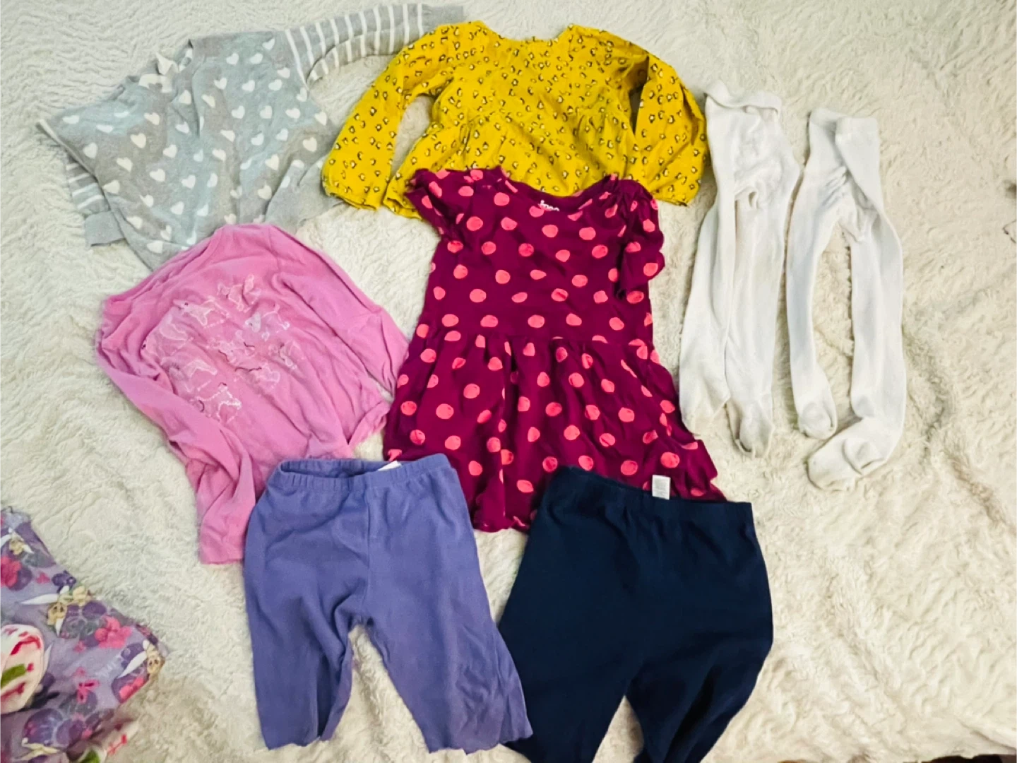 Selling a bundle of assorted kids' clothes! Includes a dress, leggings, tights, and a couple of tops. Great for everyday wear and play! Ages: 4-5T -pick up in new Westminster - firm price!