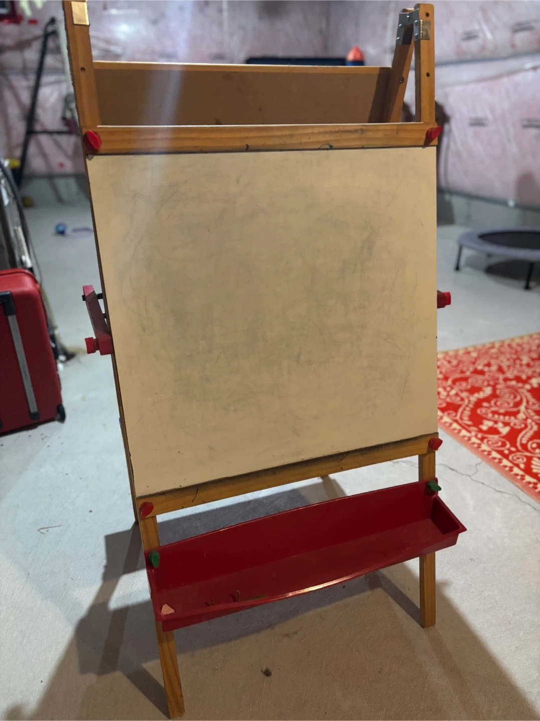 A kids' easel with both a whiteboard and a chalkboard side! Great for drawing and learning.