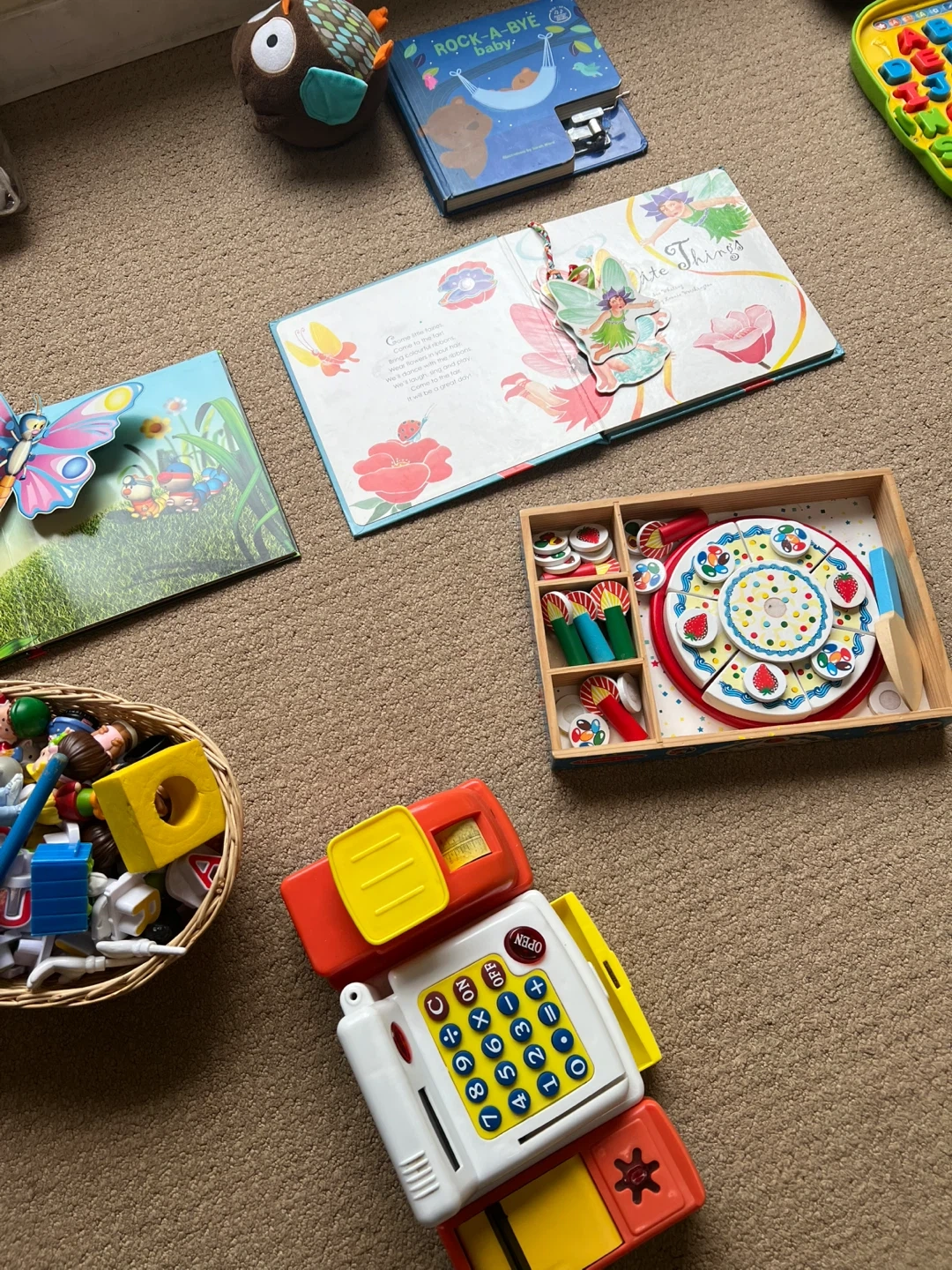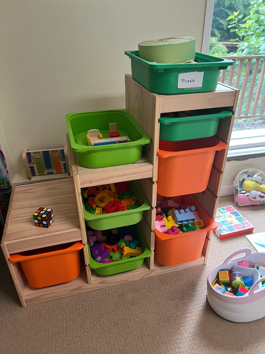 Selling kids toys, cribs, 3 step wooden shelf. Cribs and table set are from ikea. Thank you,