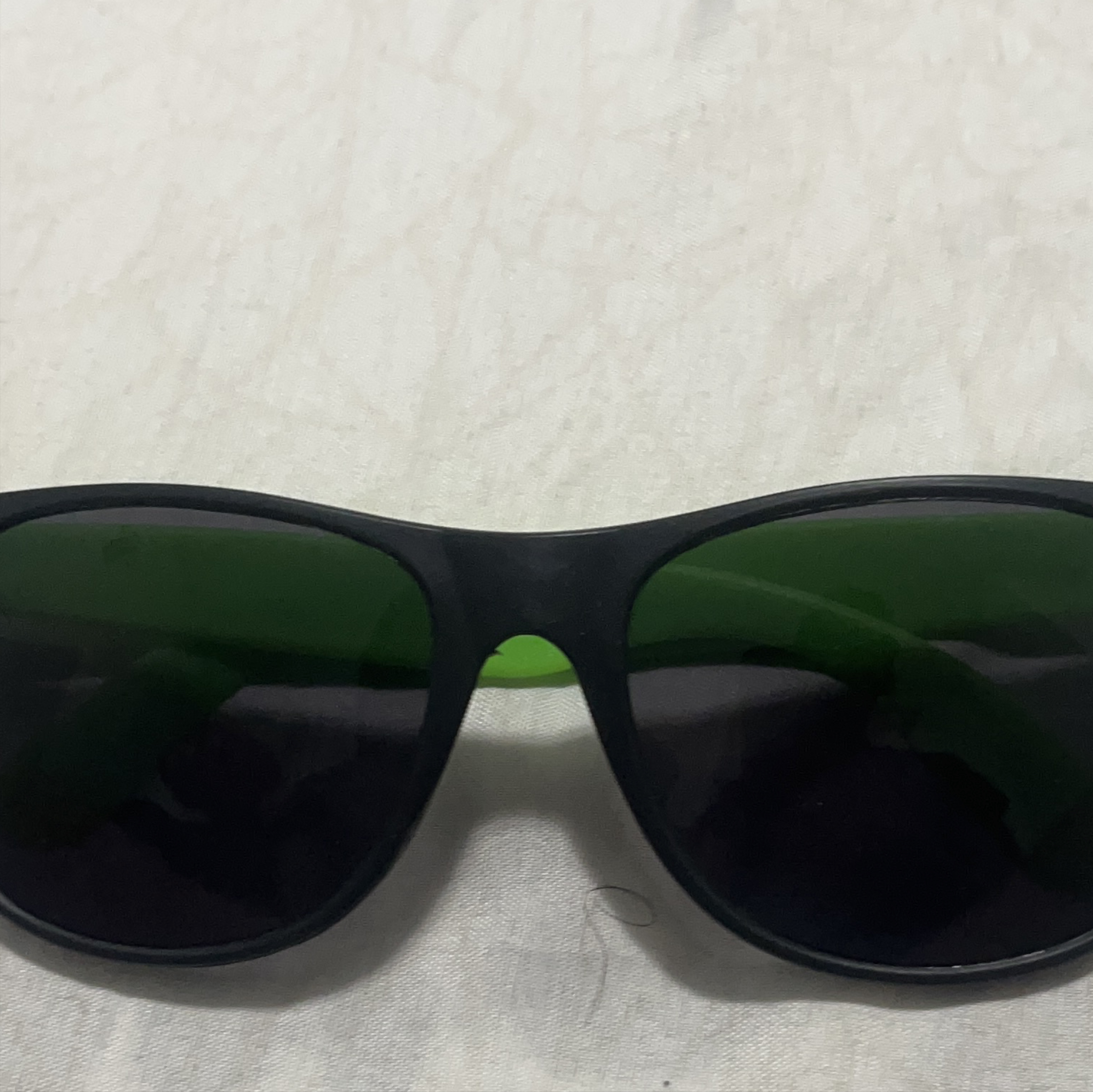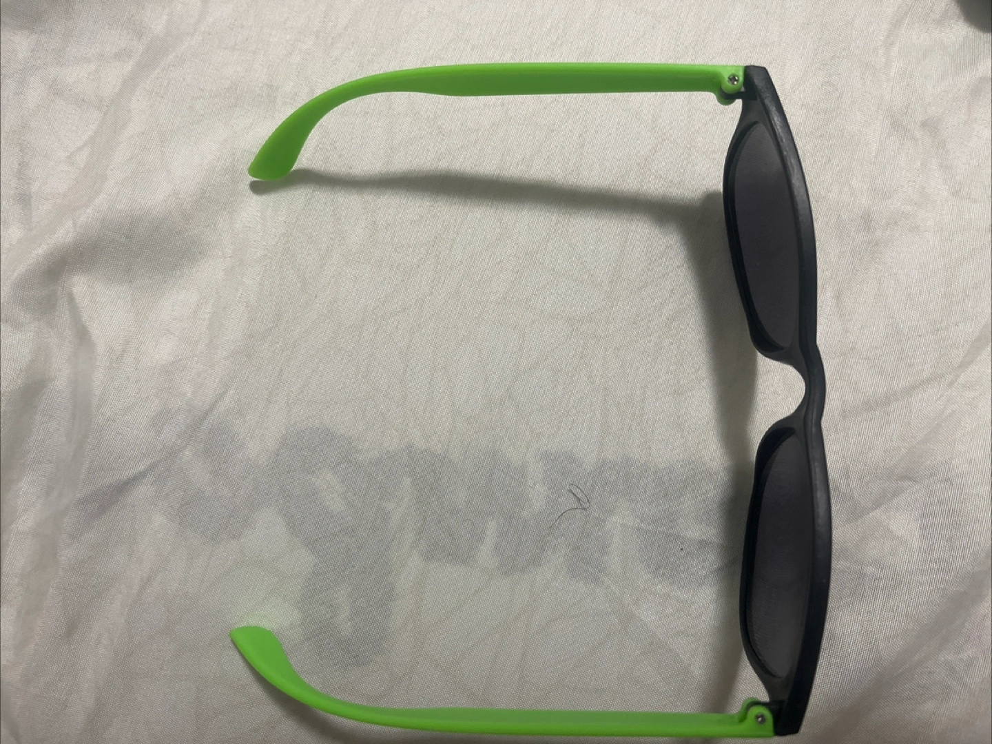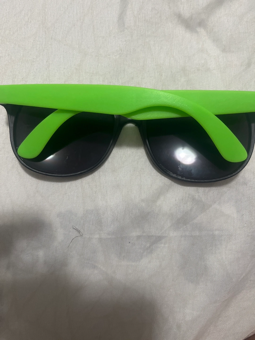 Black framed sunglasses with bright neon green arms. Great for summer. Youth sized.