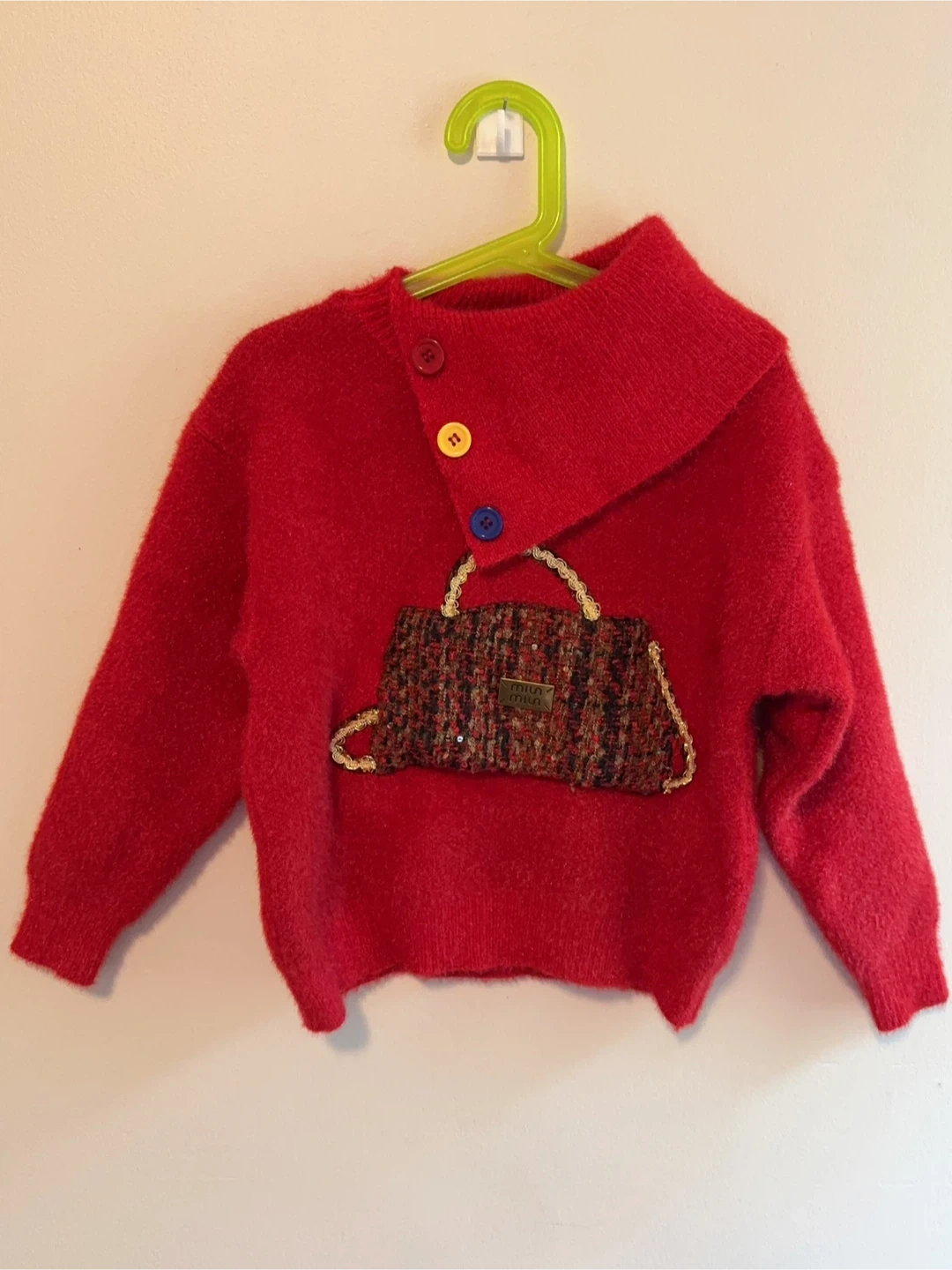 It features a unique collar and a decorative purse design with colourful buttons. Perfect for keeping your little one warm and stylish