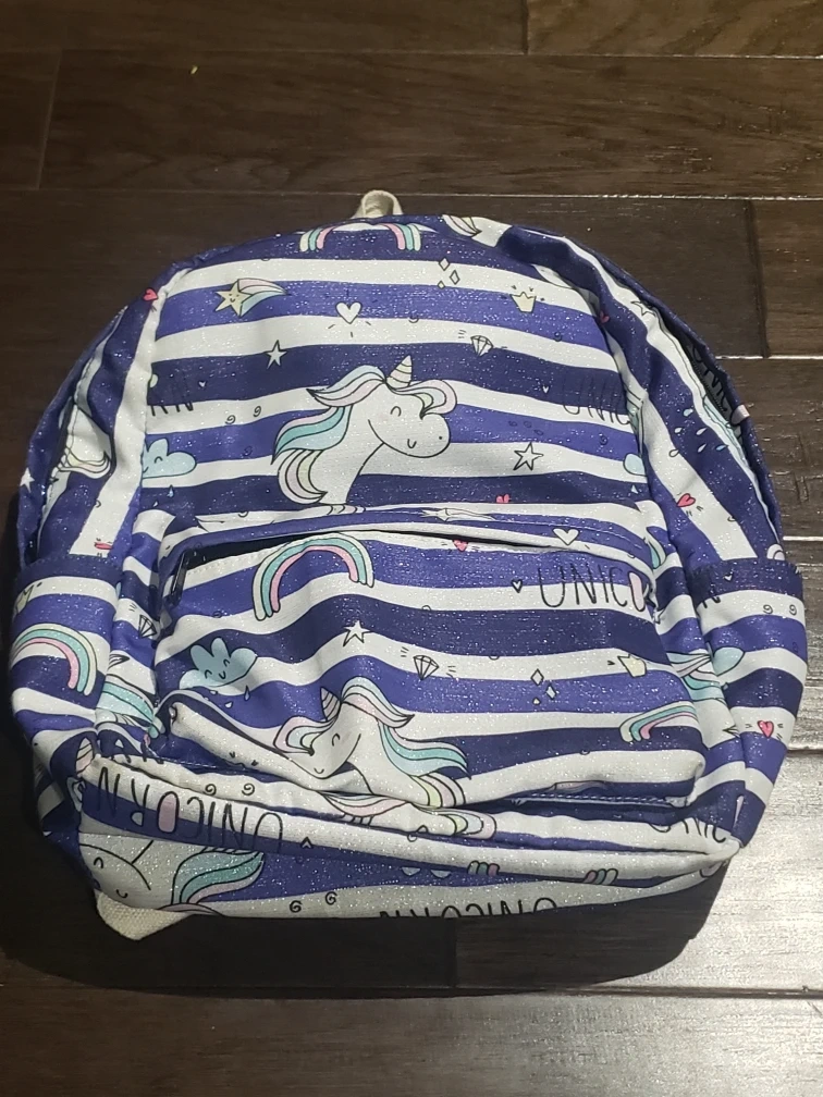 A cute backpack with a unicorn and rainbow pattern! It's in great shape and ready for a new home.