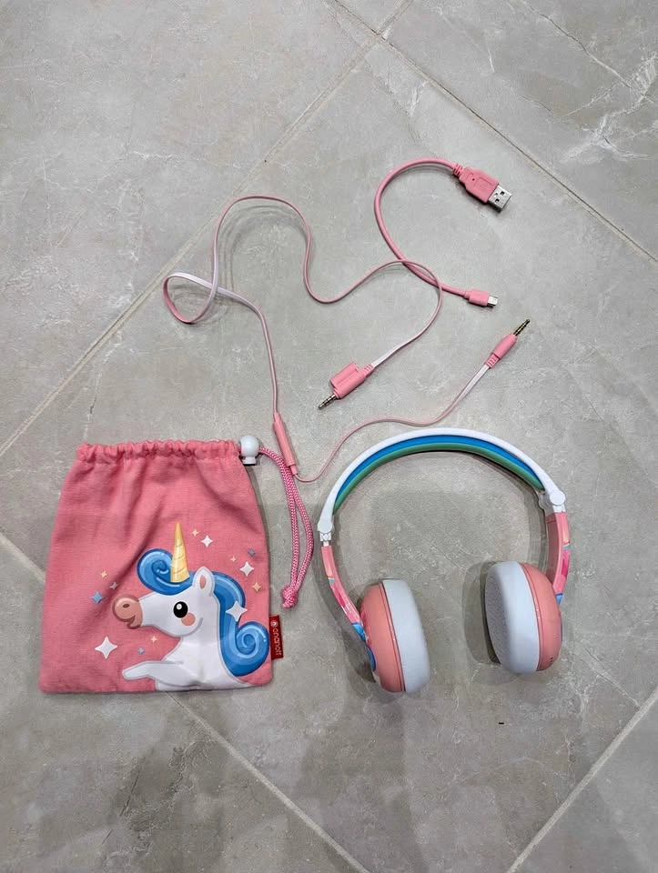 BuddyPhones Onanoff pink unicorn wireless Bluetooth headphones. Volume Limiting with Built-in Microphone for School/Home/Travel, Foldable Design for iPhone/iPad/Tablet, long Battery Life. Pickup in Nobleton