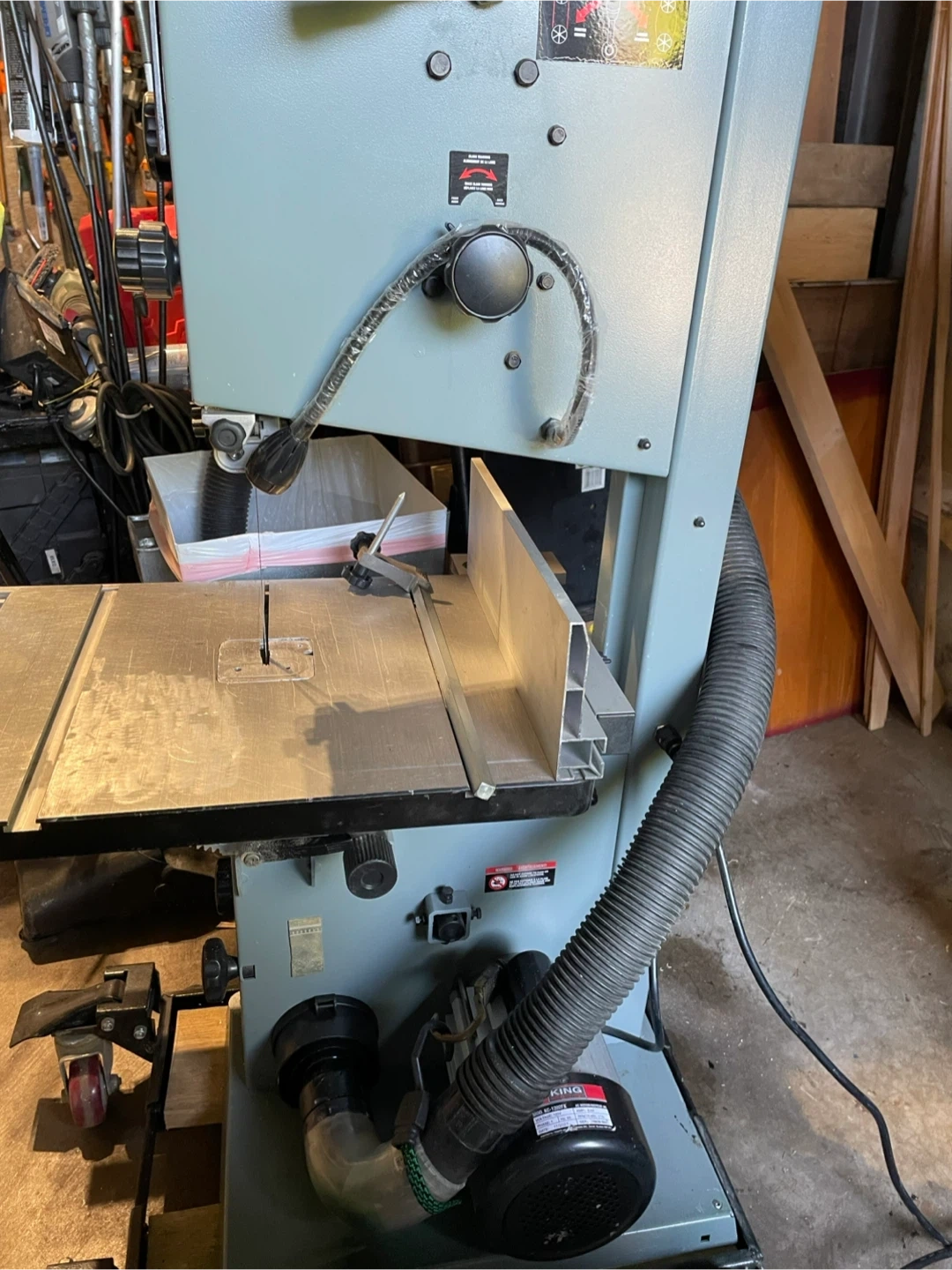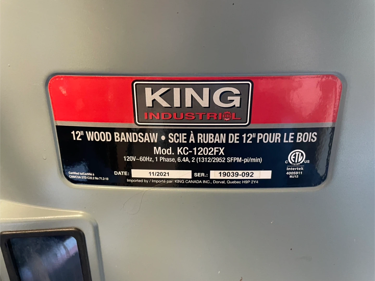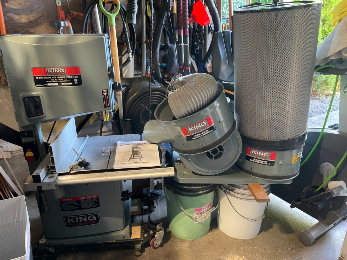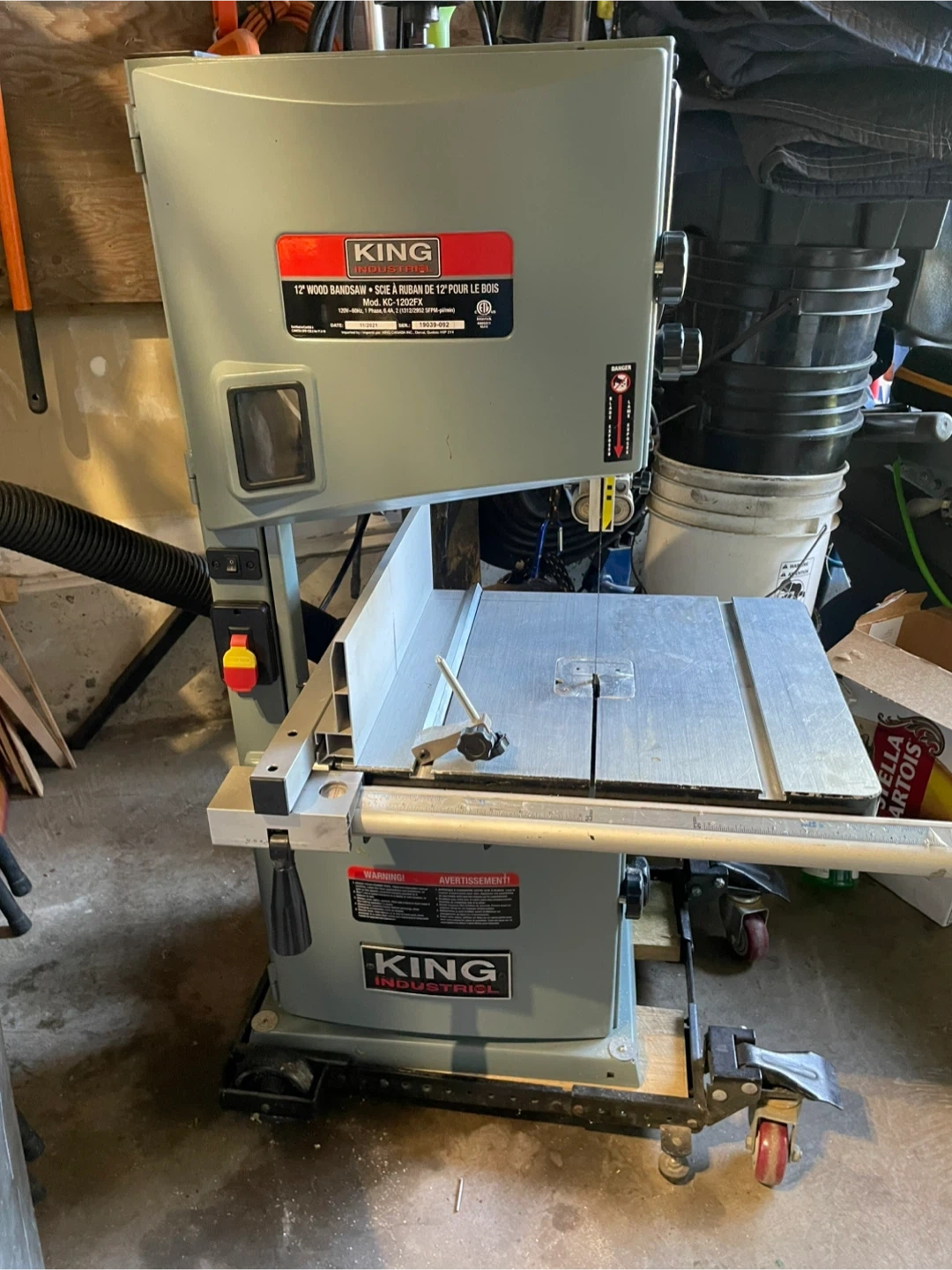 Selling a King Industrial 12" Wood Bandsaw with Stand. The model number is KC-1202FX. It also comes with the instruction manual. A great addition to any workshop. Includes 1hp King Canada dust collector.