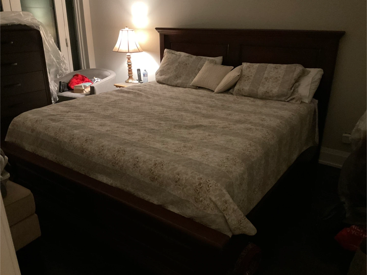 Upholstered Bed Frame with Wingback Headboard - Grey