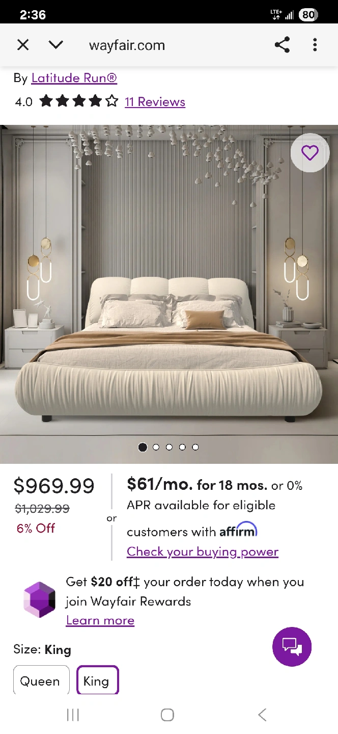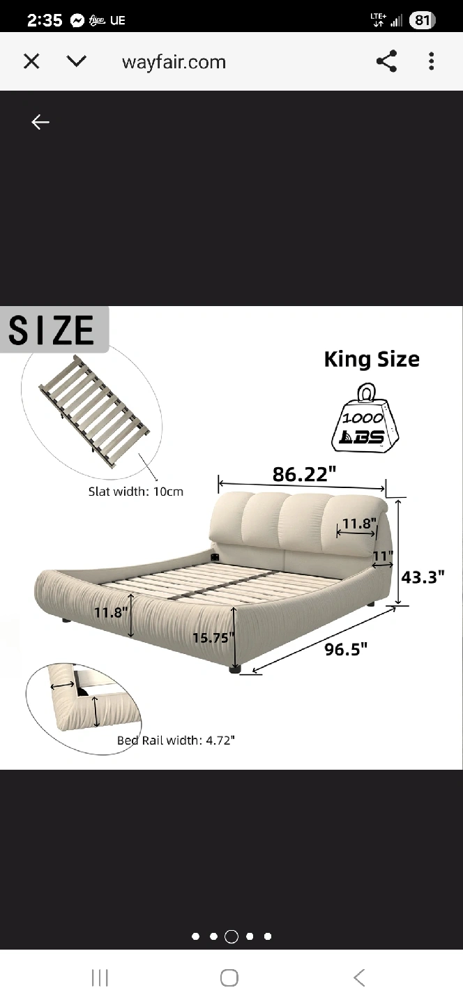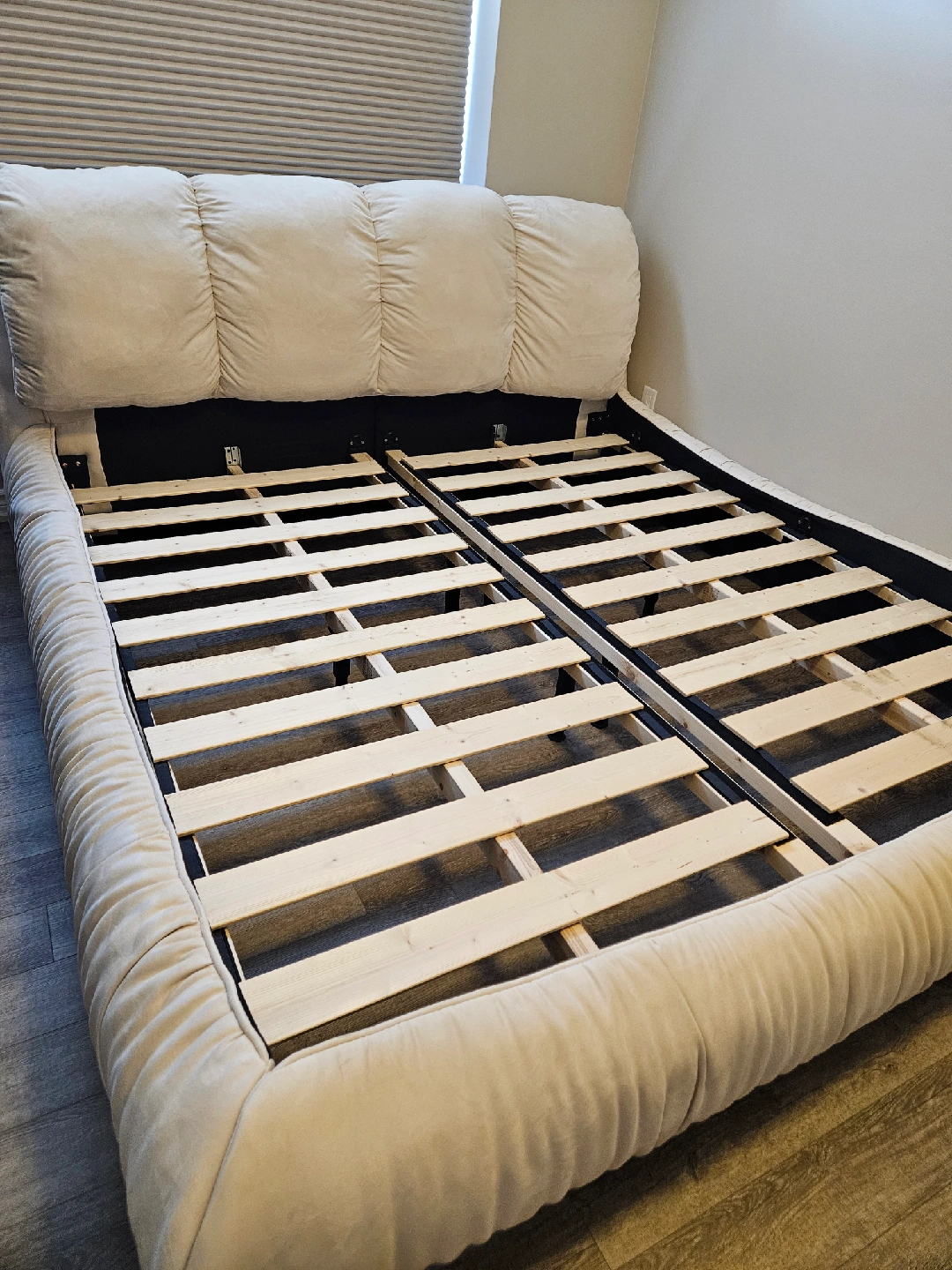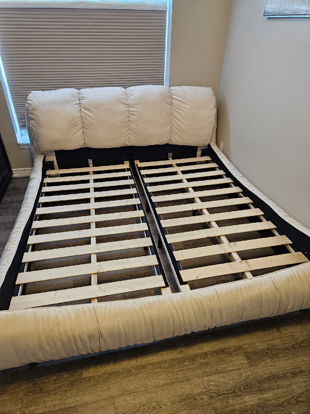 Perfect condition King bed frame Nothing wrong with the bed, just changing style All sizes and model details attached Purchased from Wayfair last year Disassembled, all parts included From pets and smoke free home Pick up Dufferin and Clark Thornhill