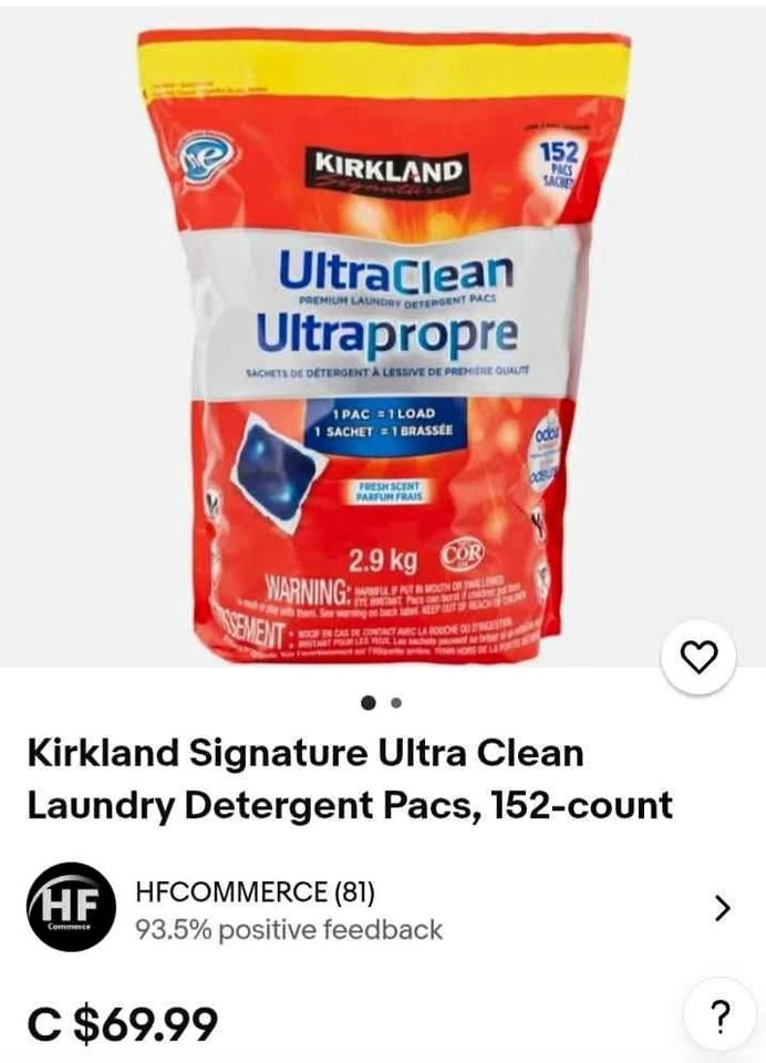 KIRKLAND UltraClean Laundry Detergent 152 (143 pacs left)