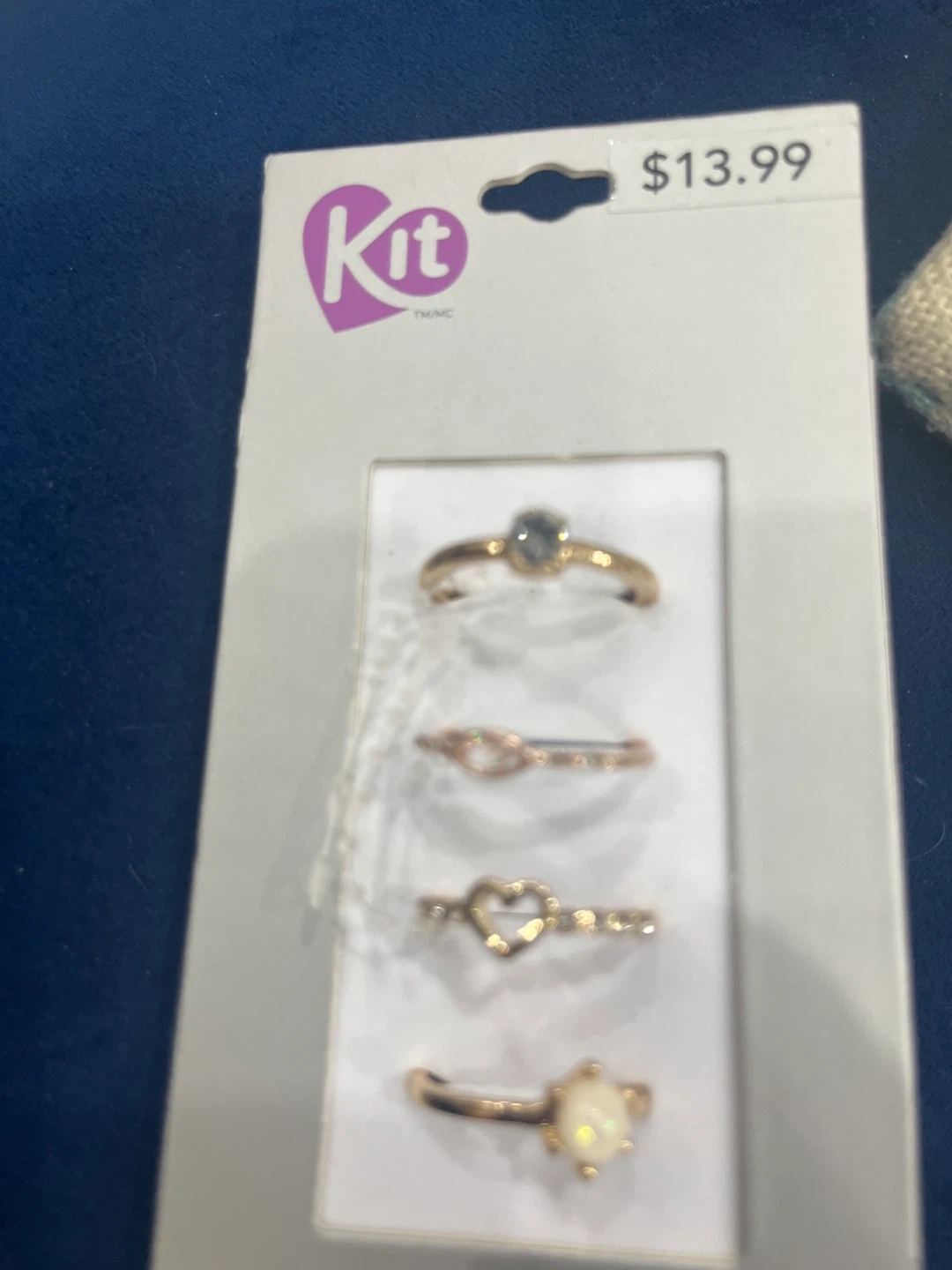 Selling a brand new Kit 4-piece ring set! These gold-toned rings are super cute and hypoallergenic. Originally bought for $13.99