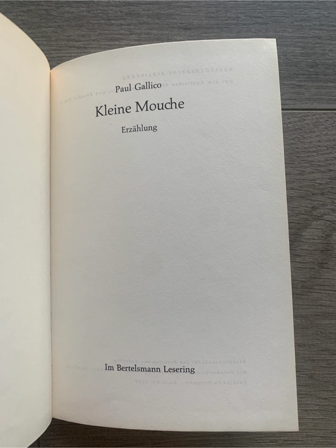 Selling a german book copy of Kleine Mouche by Paul Gallico. It's a nice little addition to any book collection!