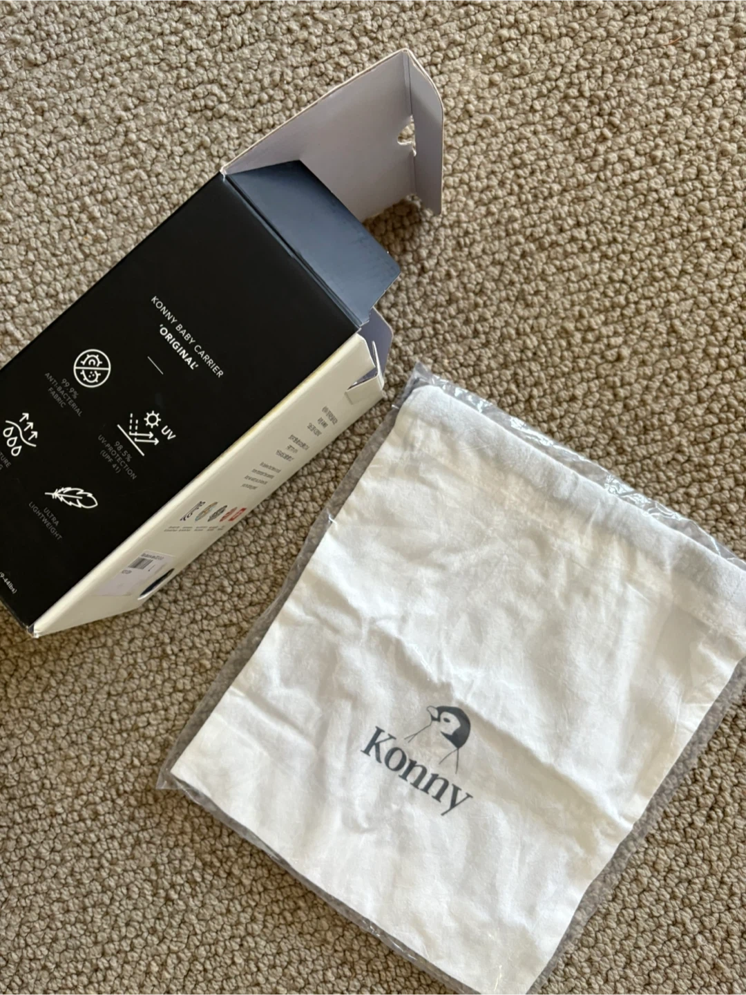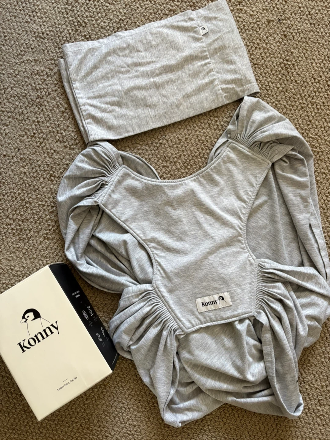 Selling a Konny Baby Carrier Original in excellent condition! It comes with the box and a carrying bag. This carrier is perfect for keeping your little one close and comfortable while you're on the go. The light grey colour is neutral and stylish. Super easy to use and lightweight!
