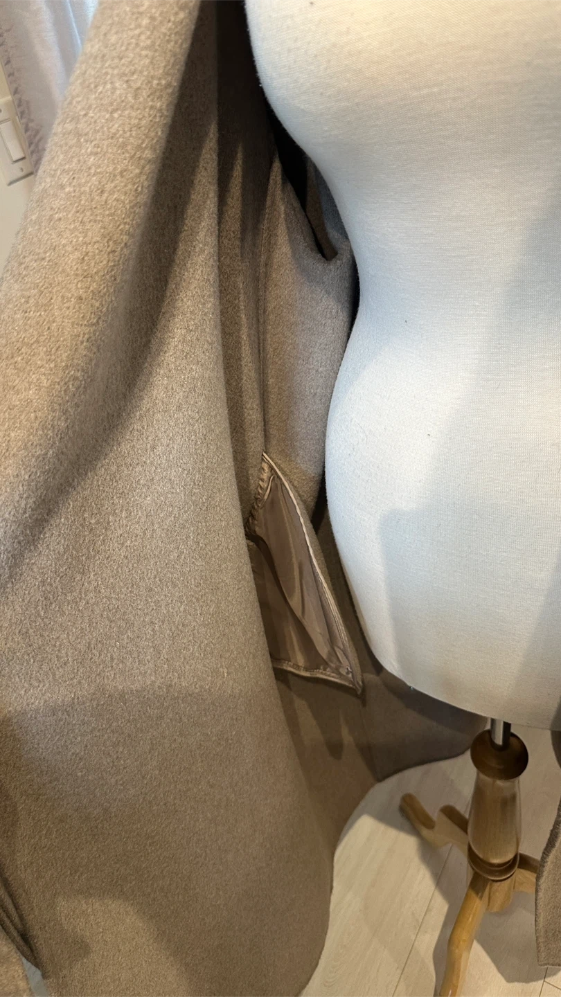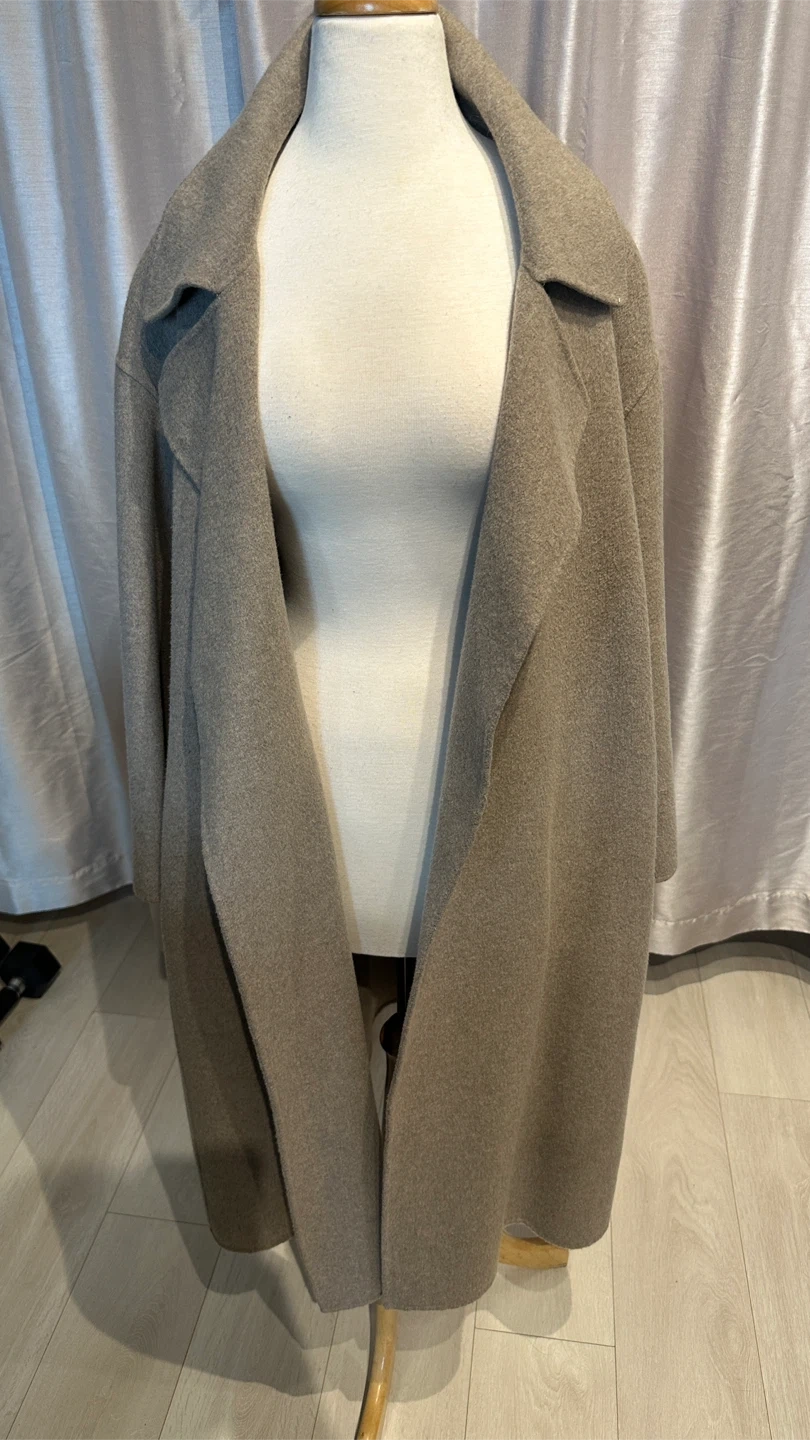 Selling a cozy wool blend overcoat in a lovely beige colour! It's perfect for layering during the colder months. The material feels soft and warm. A great addition to any wardrobe!