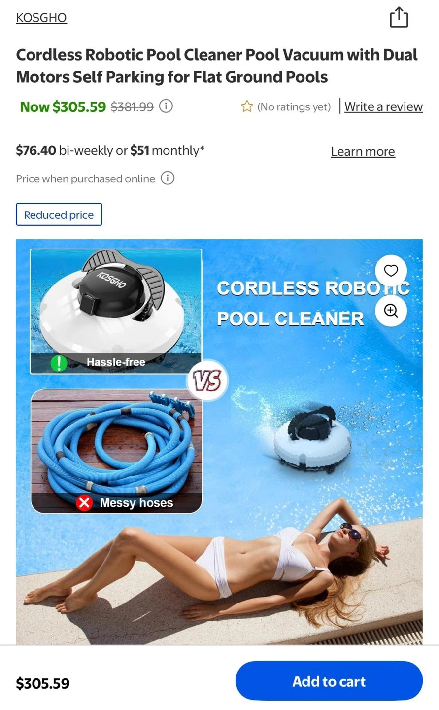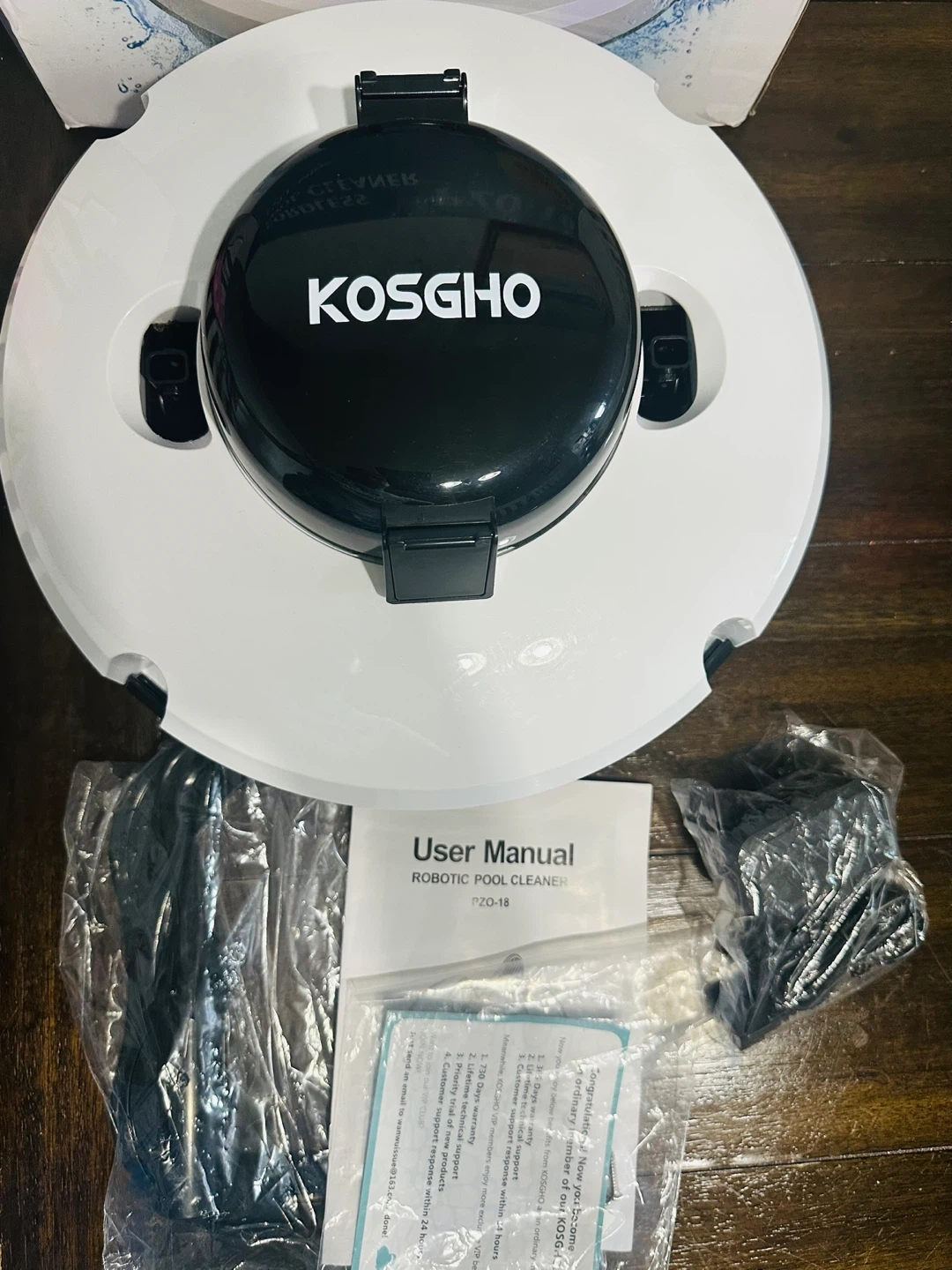I'm selling a KOSGHO PZO-18 Cordless Robotic Pool Cleaner! It comes in its original box and includes the user manual. This cleaner features dual motors and self-parking for flat ground pools. Enjoy up to 120 minutes of working time with its 5200mAh battery capacity. Say goodbye to messy hoses!