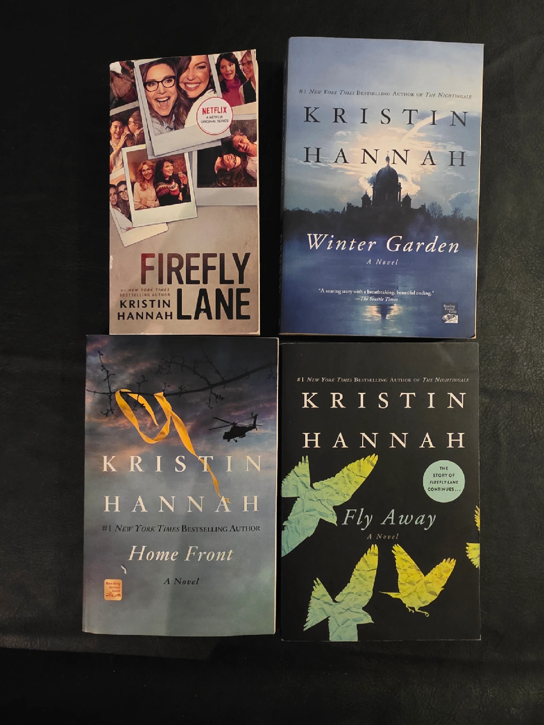 Selling a set of Kristin Hannah novels! Includes: - Firefly Lane - Winter Garden - Home Front - Fly Away