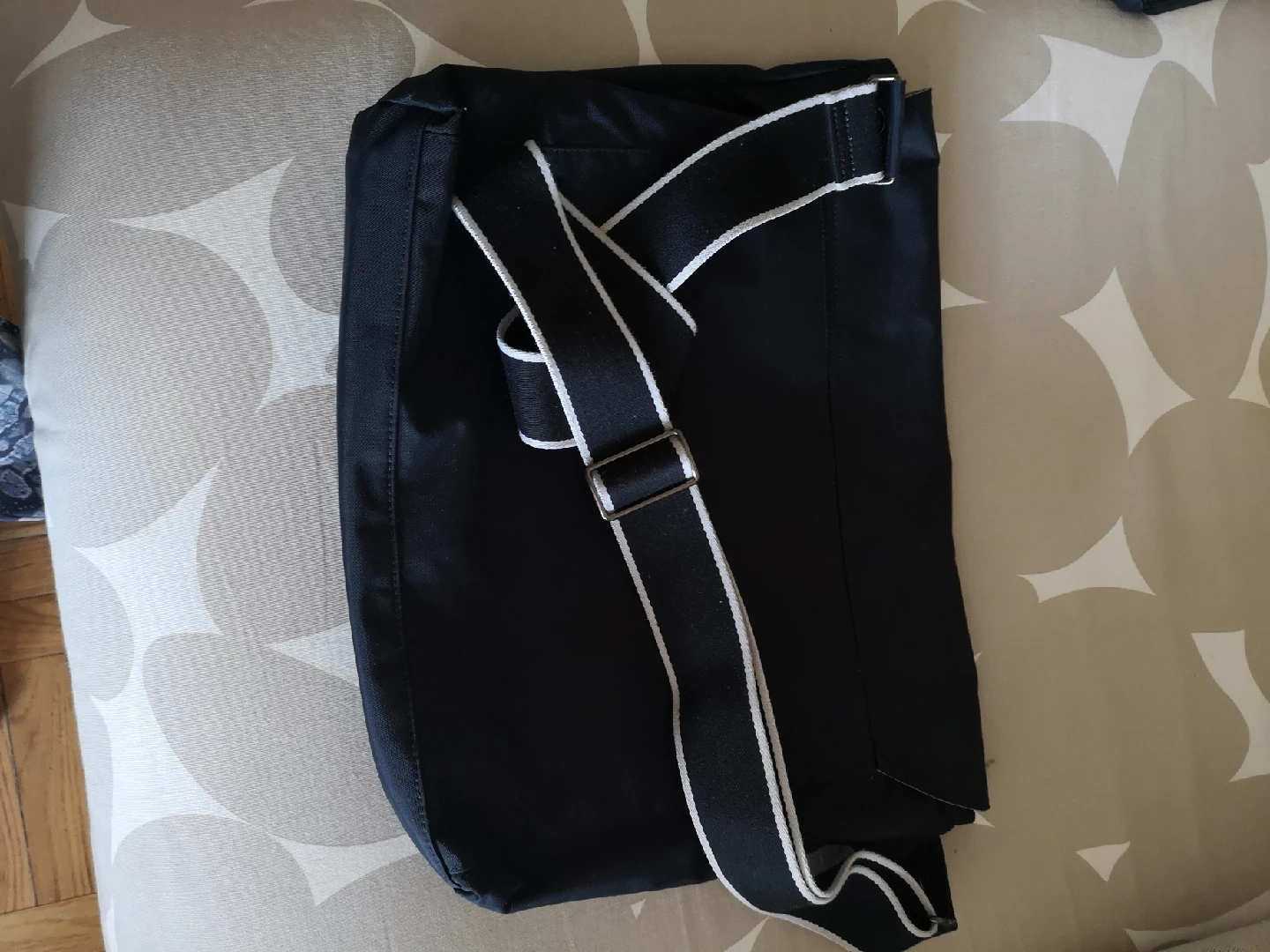 Lacoste messenger bag in black with a white and black strap. It's in great condition and ready for a new home!