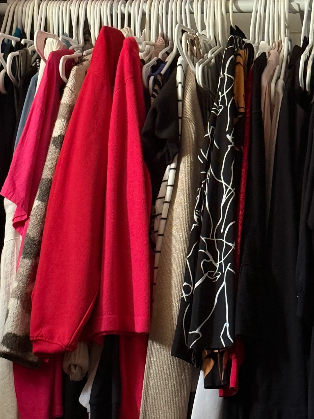 Size medium to large dresses, blazers, jackets shirts, sweaters, skirts. Professional wear, name brand, casual.