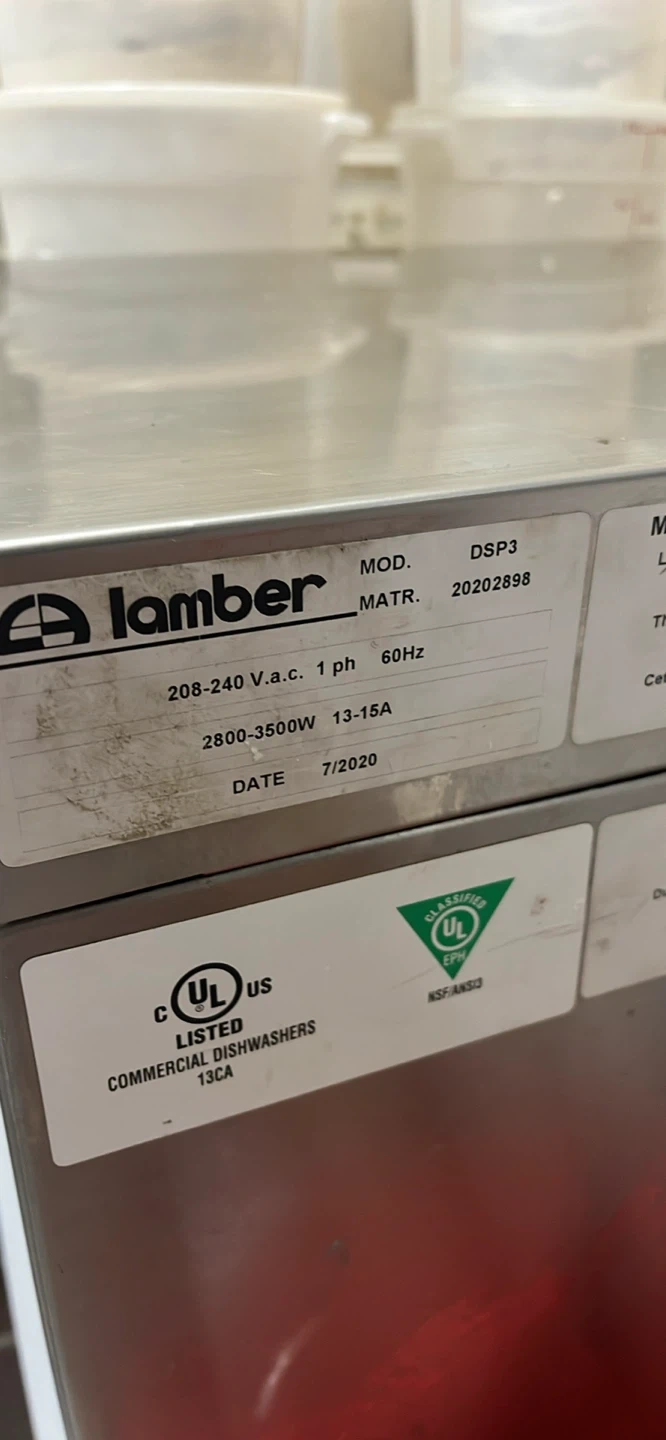 Selling a Lamber DSP3 commercial dishwasher. This equipment is intended for washing and sanitizing dishes and glasses. Minimum wash cycle time is 99 seconds and minimum rinse cycle time is 18 seconds. We had this for two years. Then put it into storage once we closed our retail store. I don’t have a plug to test it as it requires a special plug. Just before we moved we plugged it in and it didn’t turn on. It’s likely a simple fix and we’ll just require a service callas it’s a pretty new machine and very well built. Sales for 3000+ we are selling it for 800 to reflect this issue.