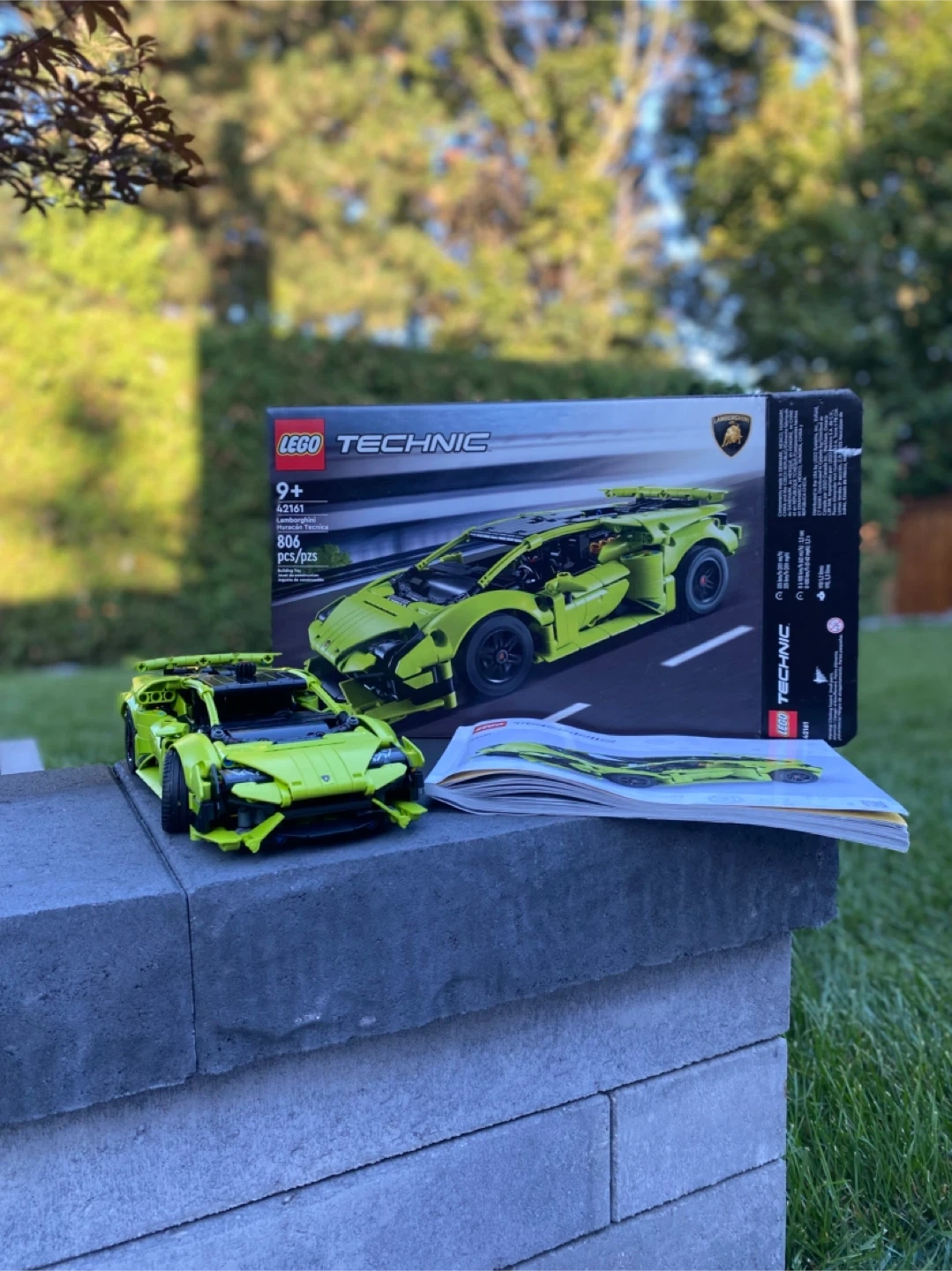 Lamborghini Huracan technic Lego set built and ready for use or display. Comes with instruction manual box and the Lego set.