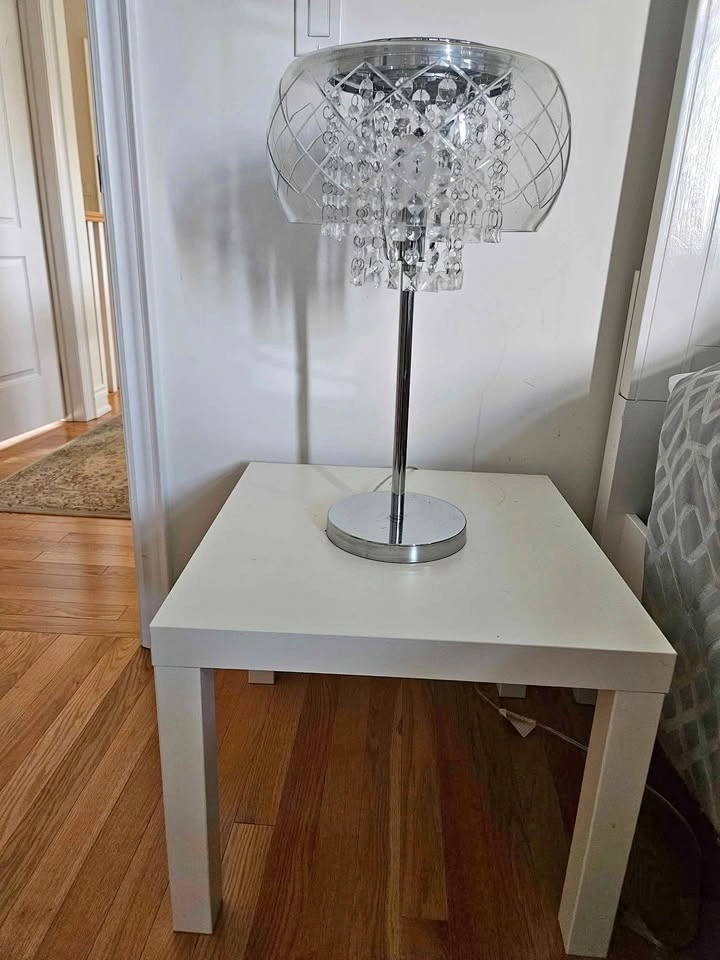 Crystal lamp, sued but in a very good condition. 23" H 13" W ( the top) Let me know if you're interested!