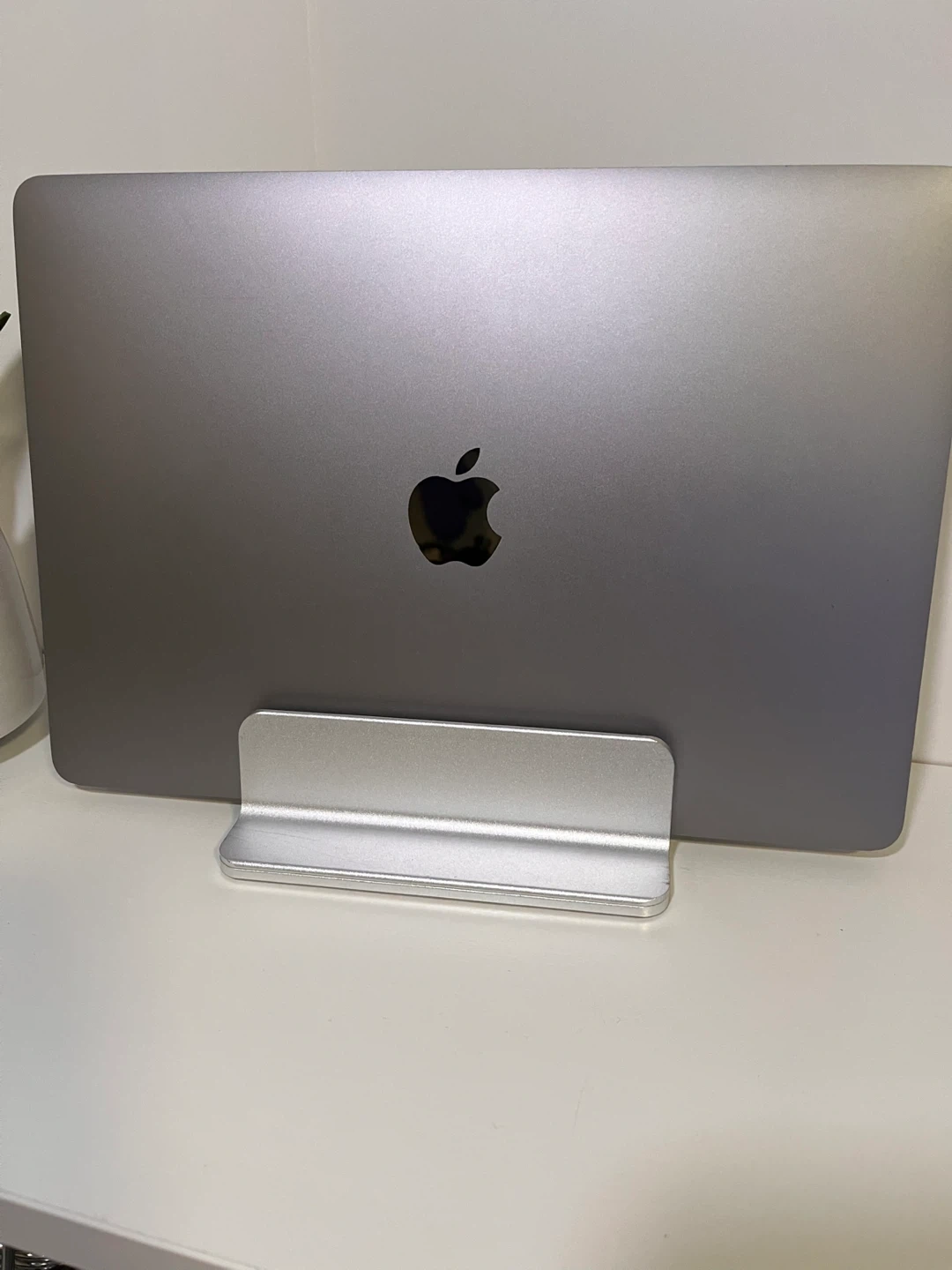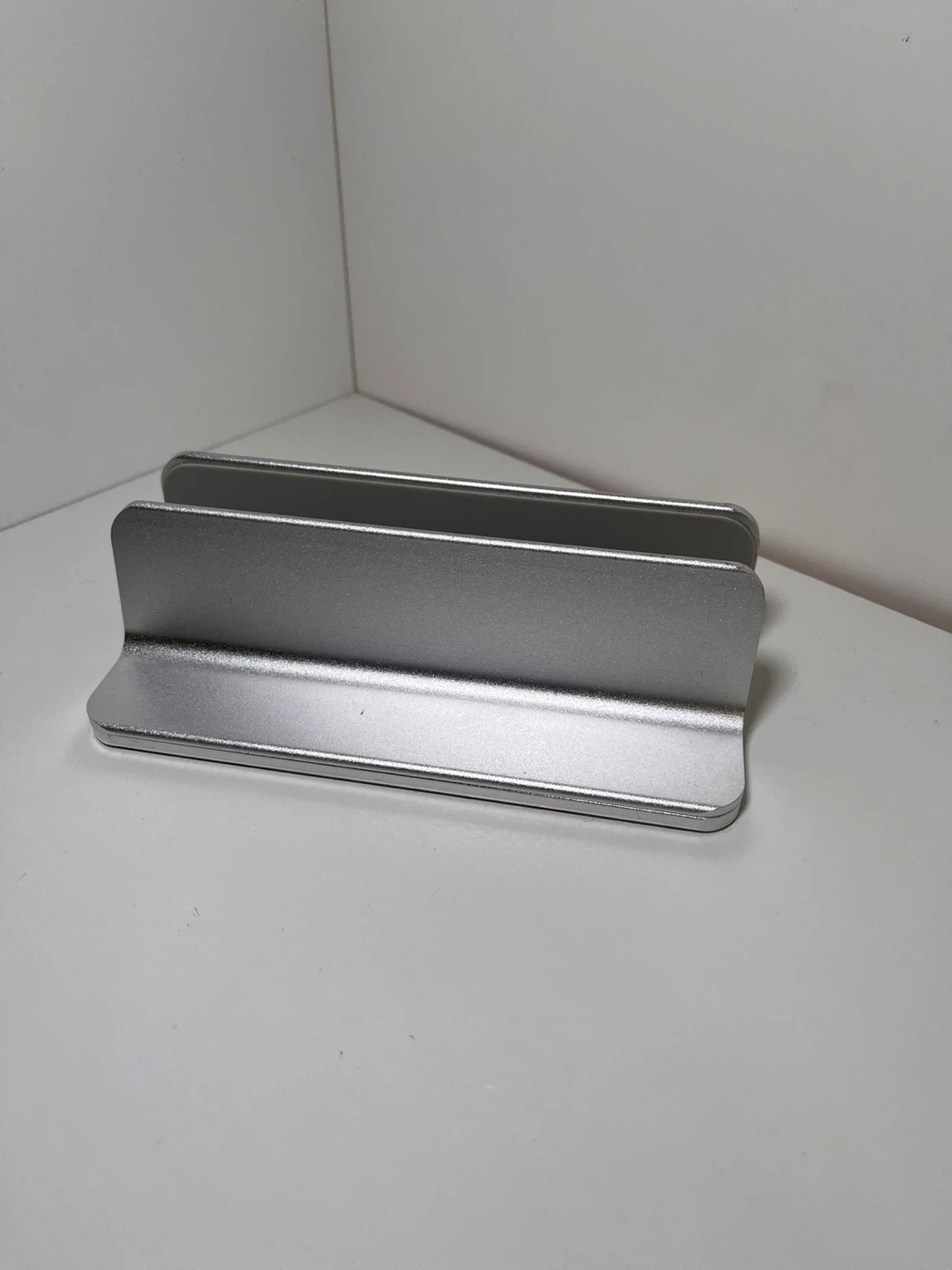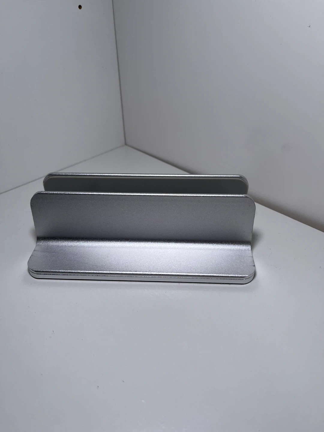 Selling a laptop stand, perfect for putting your laptop away and allowing you to take back some space off your desk. It's made of aluminum and is a sleek silver colour. Adjustable width and slot for one laptop.