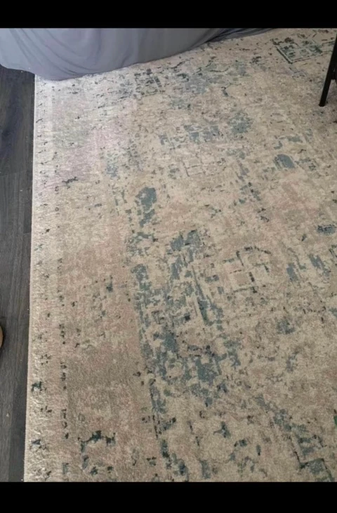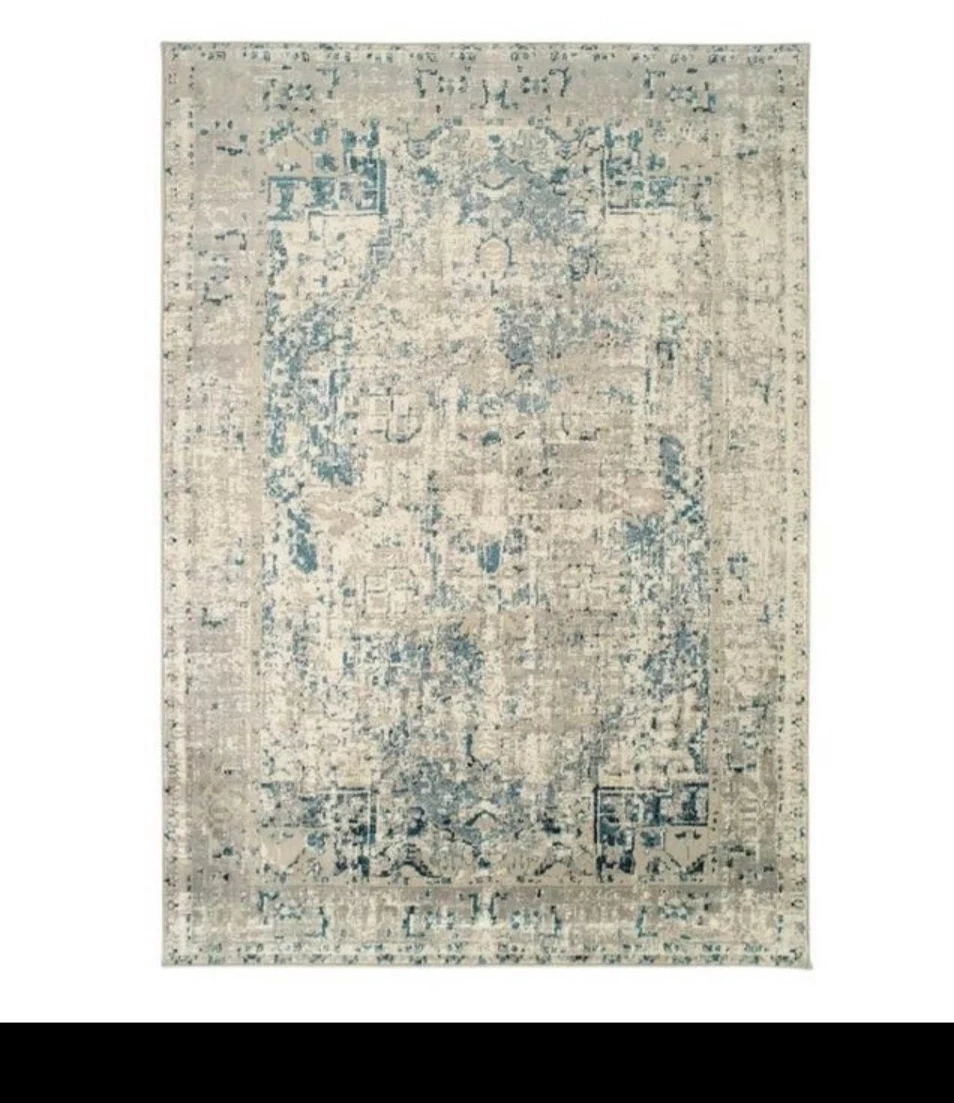 Contact for Price Large area rug with blue and grey patterns on a beige background. Good condition. Pickup Airdrie SW