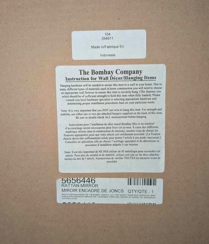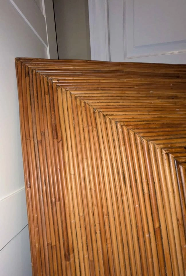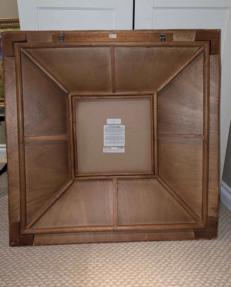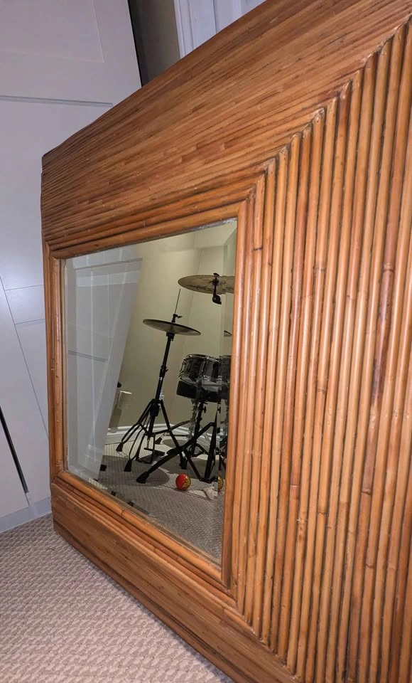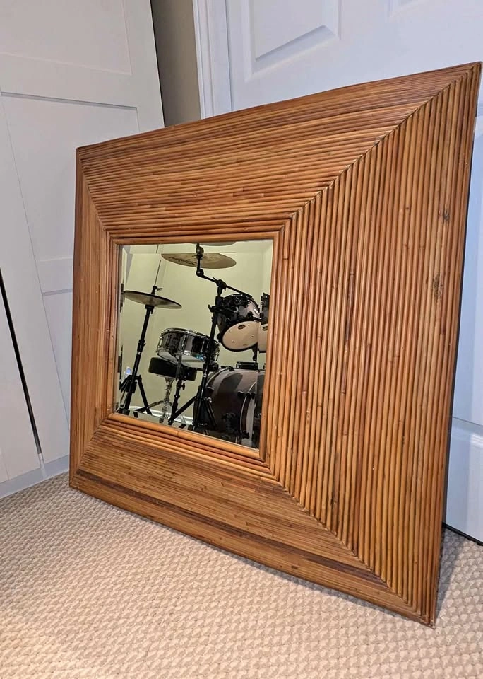 Vintage, Unique and in Great condition! This gorgeous & rare Vintage rattan, pencil reed, Pyramid Mirror - 36x36 inch square a large statement piece for any wall , perfect for boho space - beveled mirror. Made in Indonesia for Bombay Company. Listed for $1000+ in many online retailers. Pick up/meet asap Burlington-Oakville (or within 2 km)
