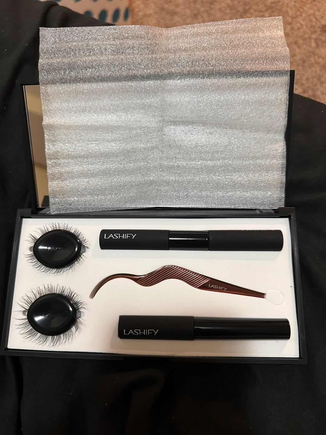 Bought but never tried the kit out, do it yourself extensions! Comes with fuse control wand, remover and prep, bond and “glass” waterproof lash extender serum. Instruction step by step included in box as well as has tutorials online. Has 2 different lengths, original cost for kit is about $170