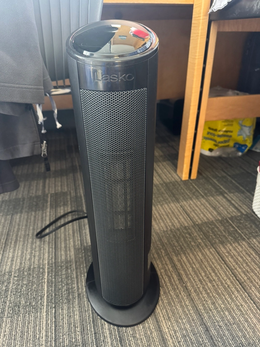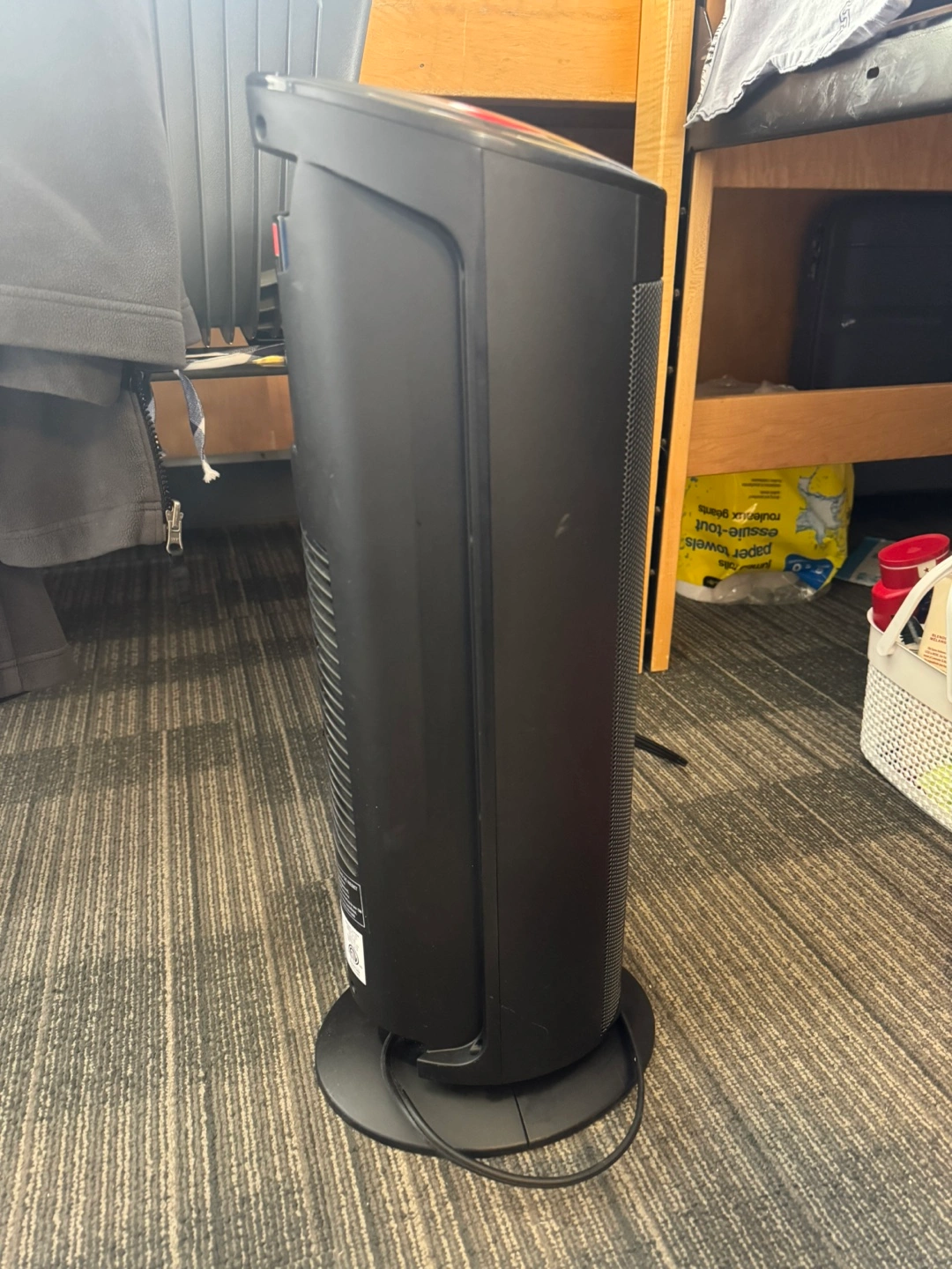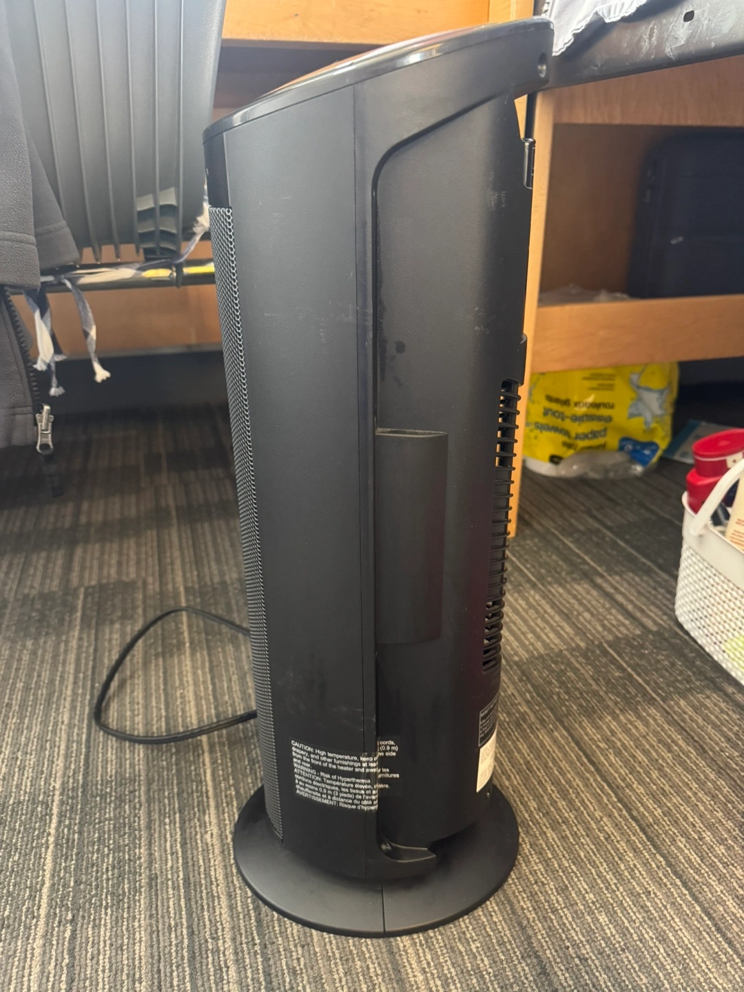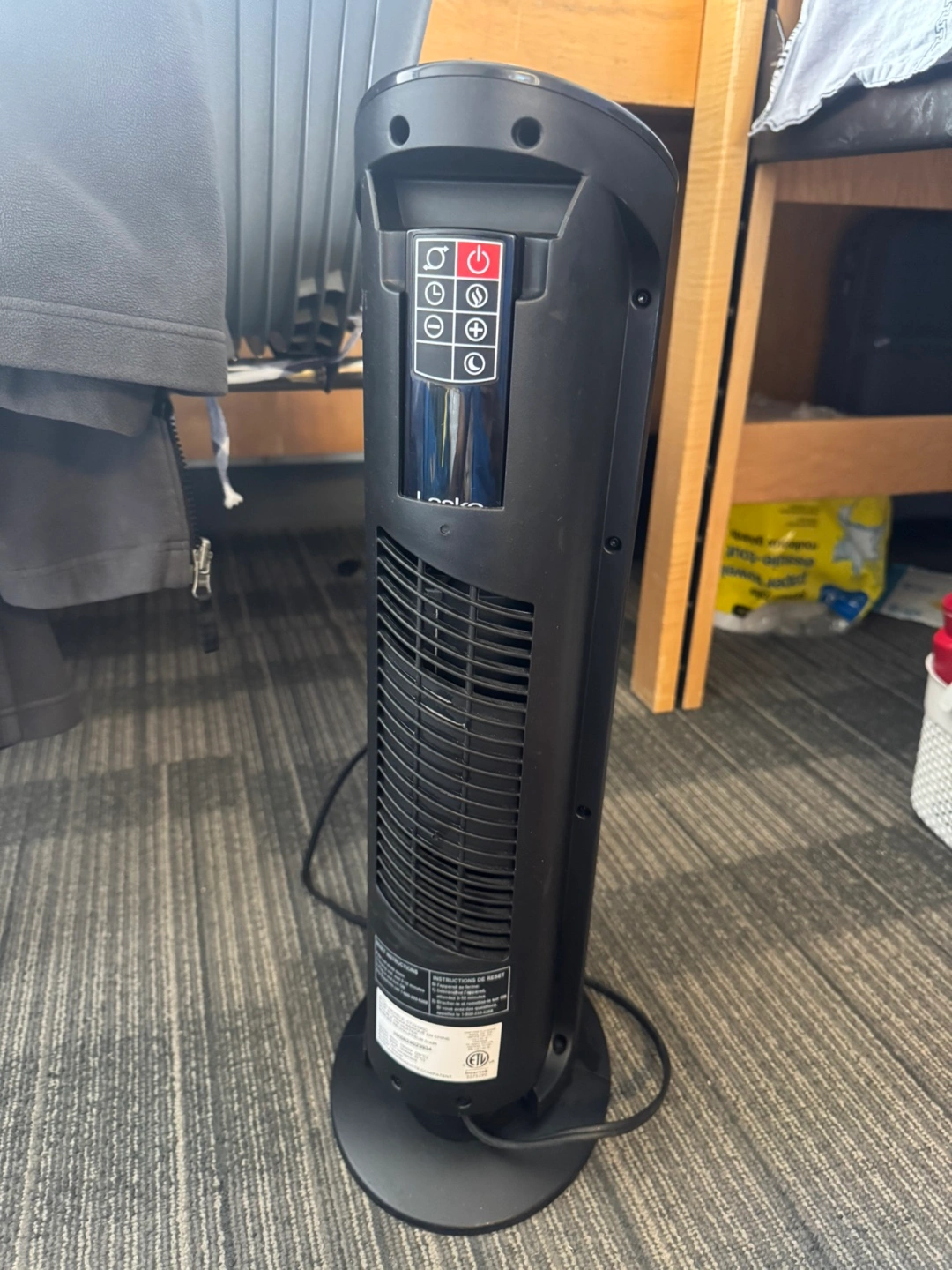 Black ceramic tower heater. Multiple heat settings. Oscillating function. Good for small spaces. Pre-owned. Have been used only 2-3 times