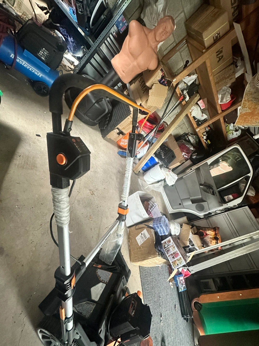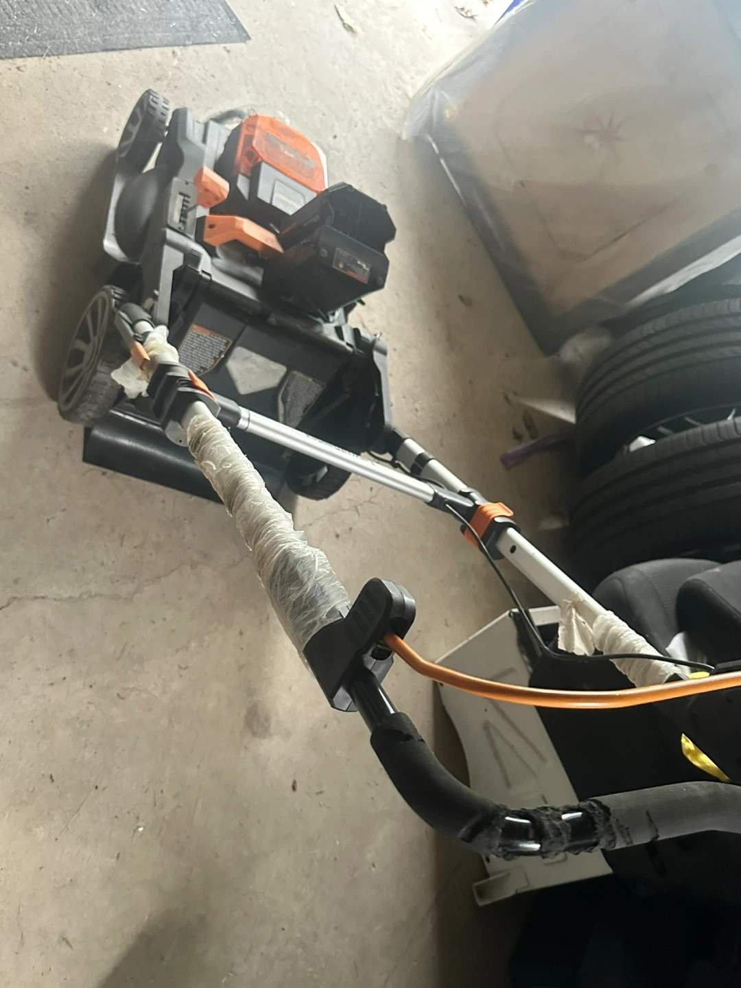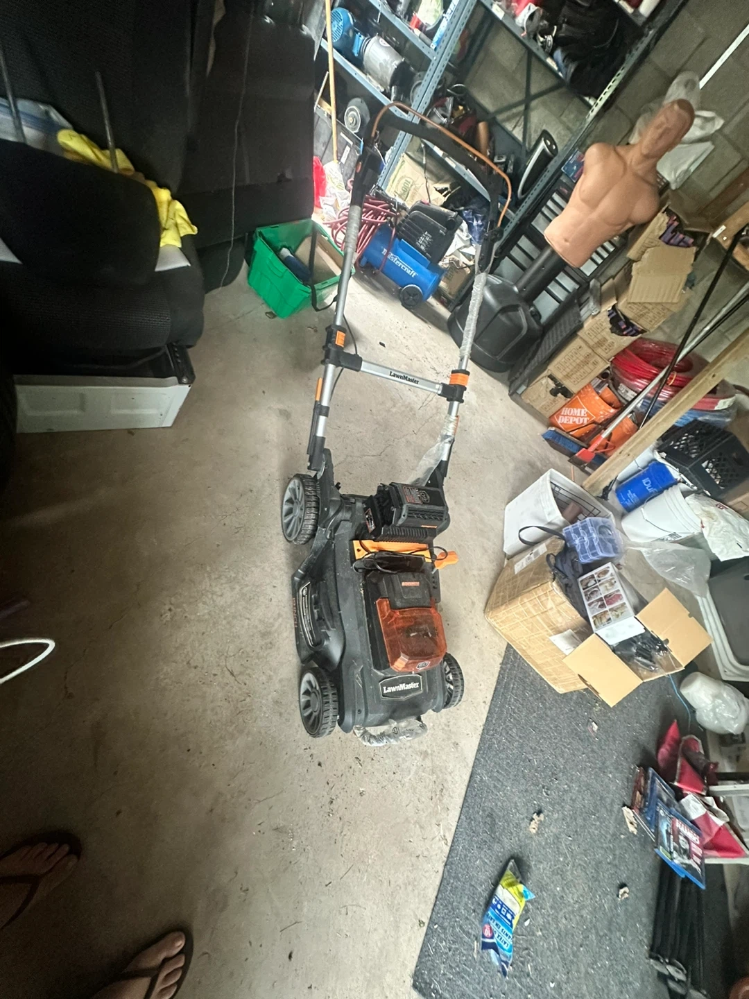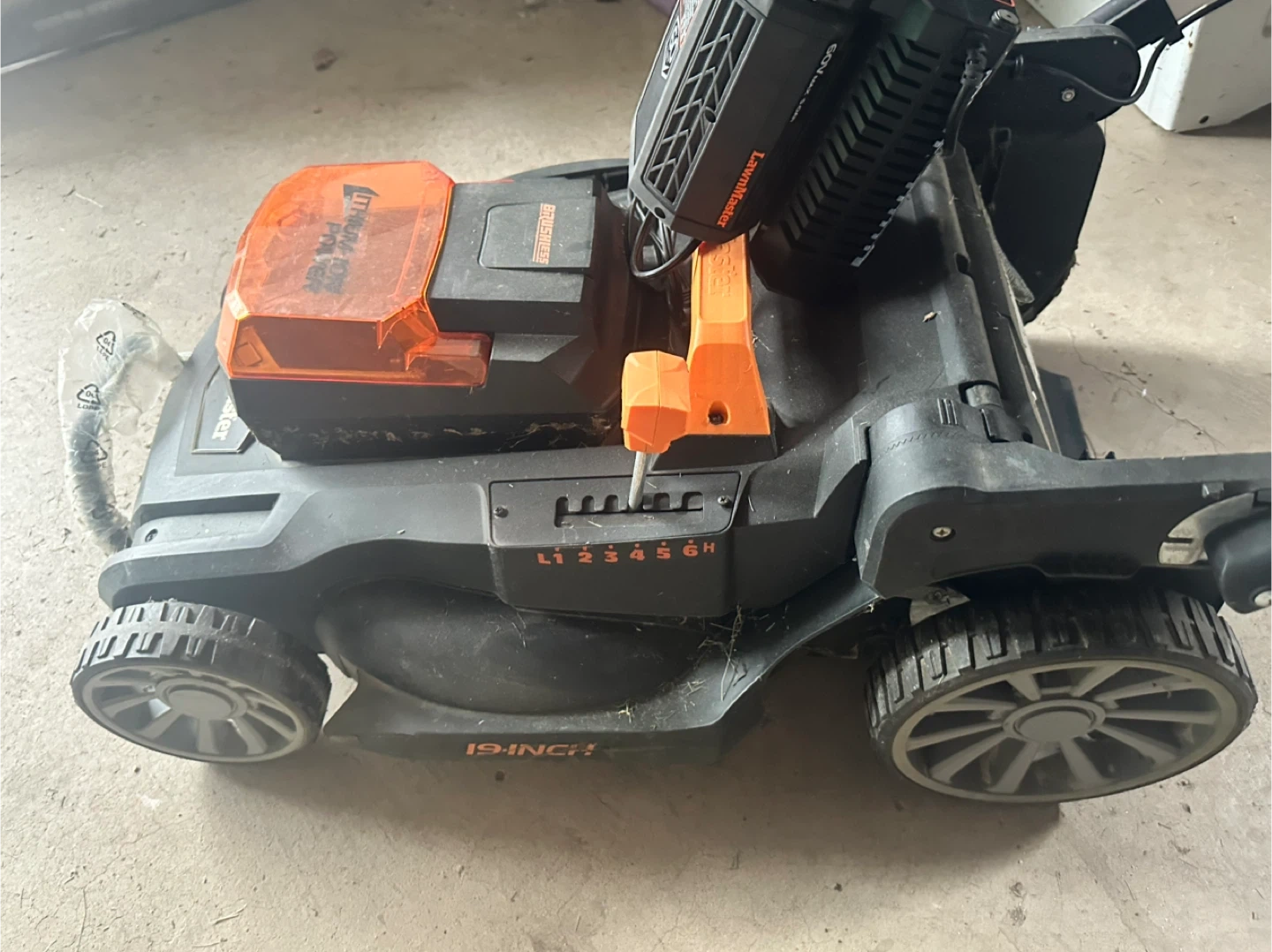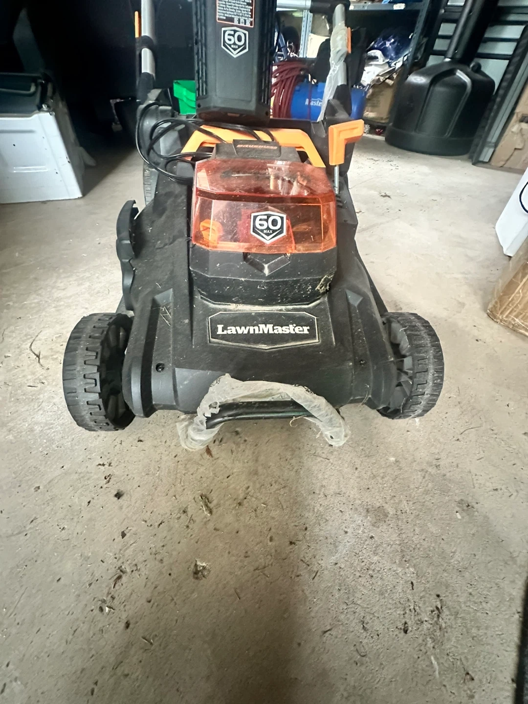 Selling a LawnMaster 60V cordless lawn mower. It's a 19-inch model, perfect for smaller yards. It shows signs of use, but it's still in good working condition. Great for getting the lawn work done without the hassle of cords!