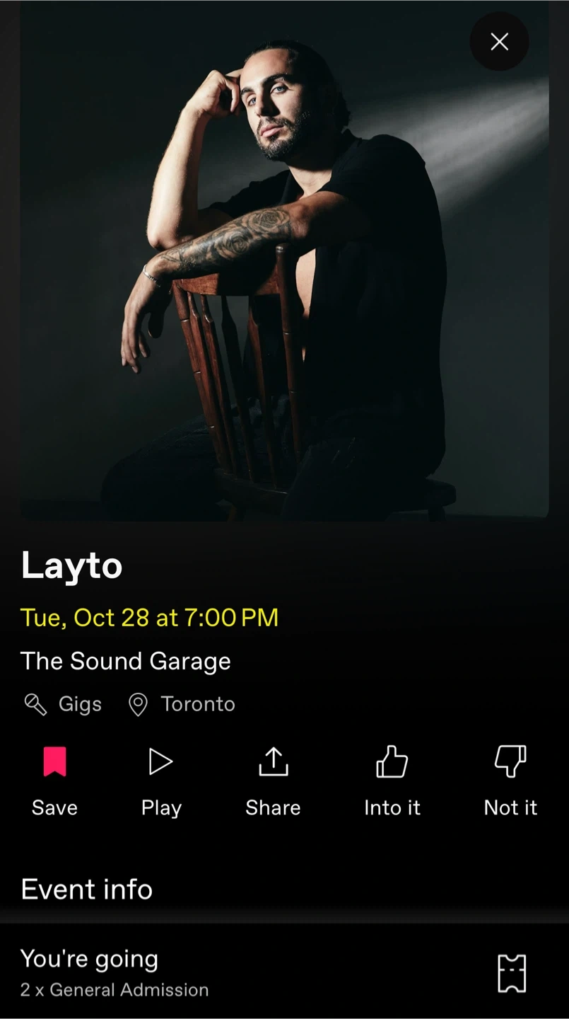 Selling two general admission tickets to see Layto at The Sound Garage in Toronto on Tuesday, October 28 at 7:00 PM Once paid for will send to you via text or email