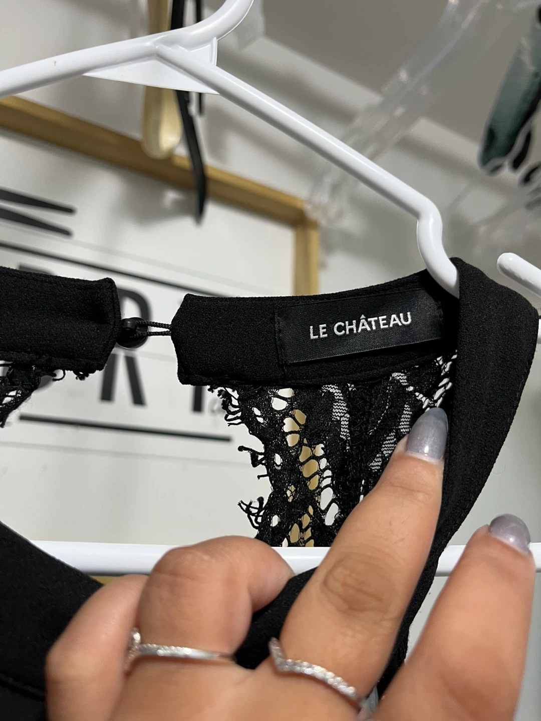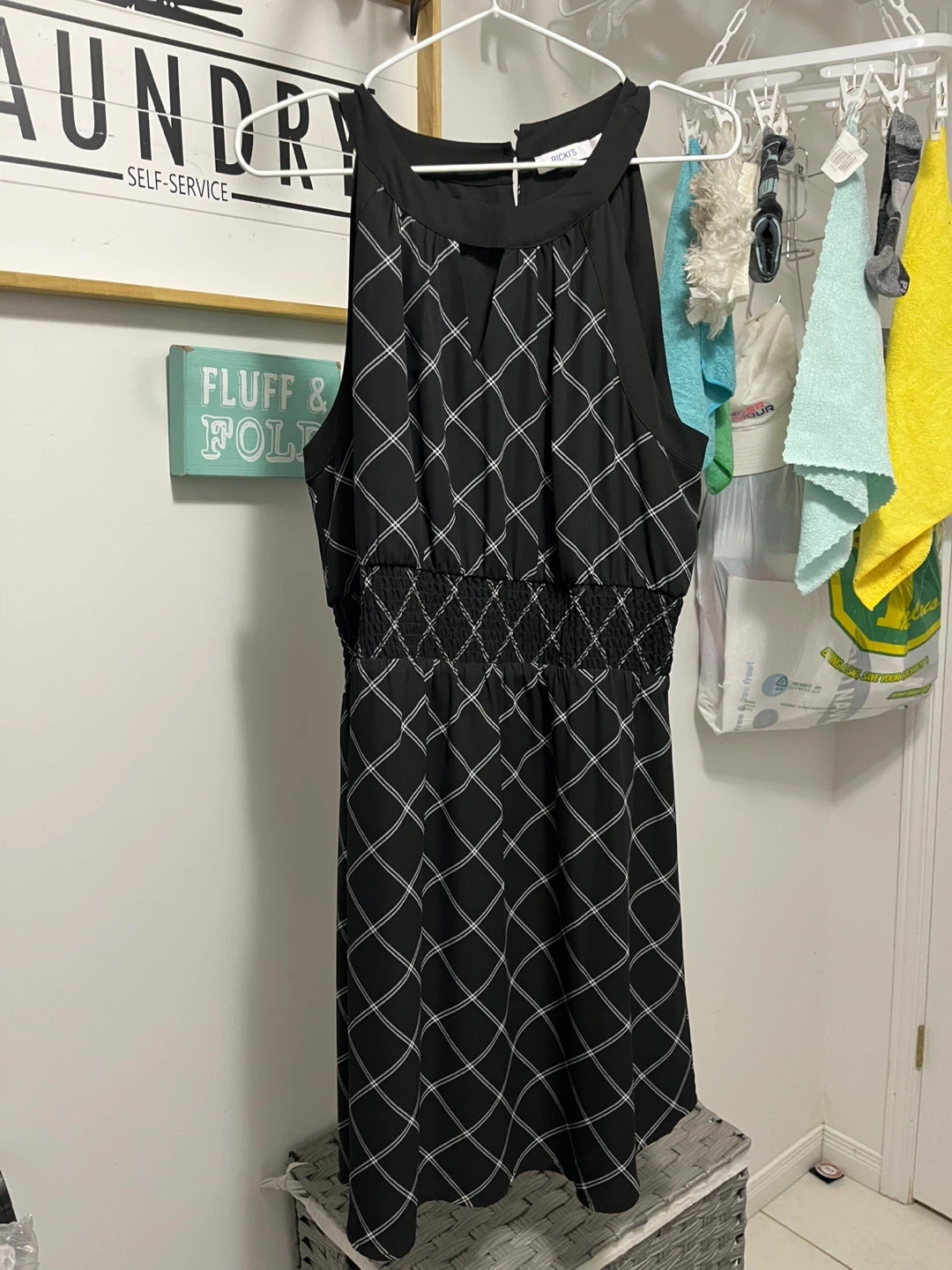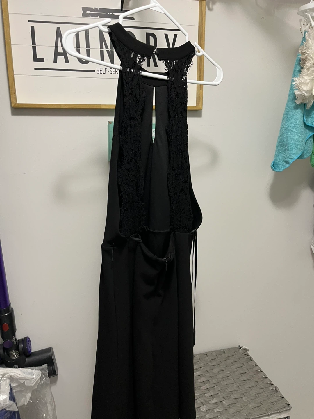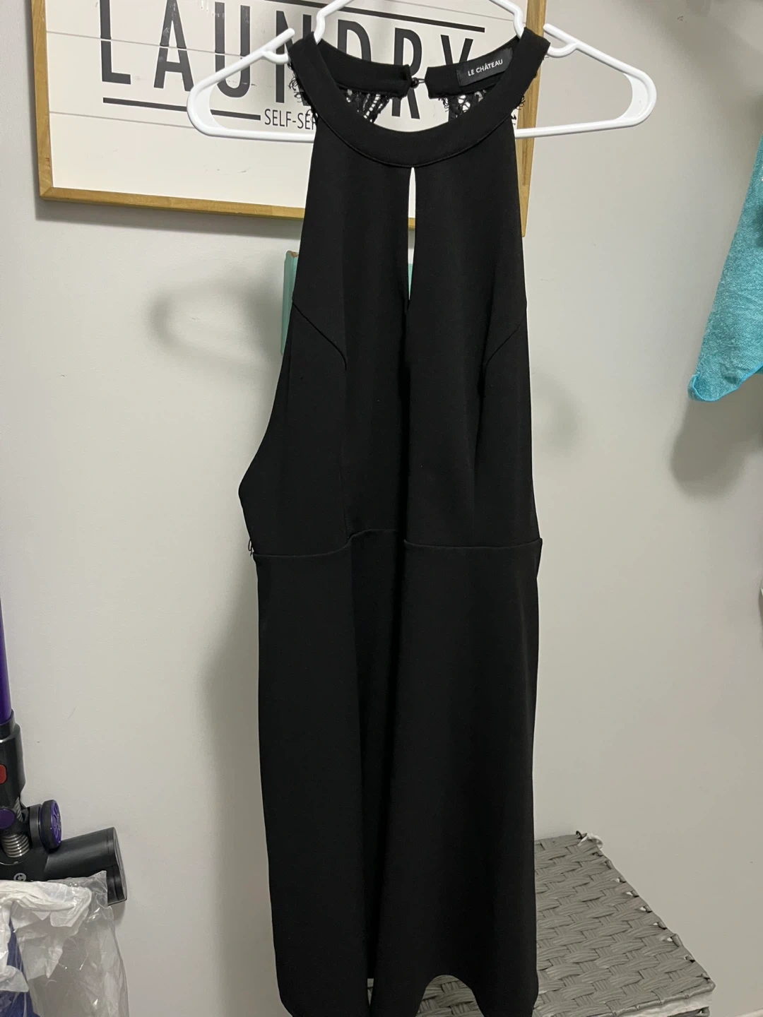 Selling a stylish black dress that's a blend of Le Chateau and Ricki's! It's a size 14 and features a unique design with a halter neckline and a peek-a-boo back. Perfect for a night out or a special occasion! the last three dresses are from Suzy Shier and are going for 15 each, they are all XL in size
