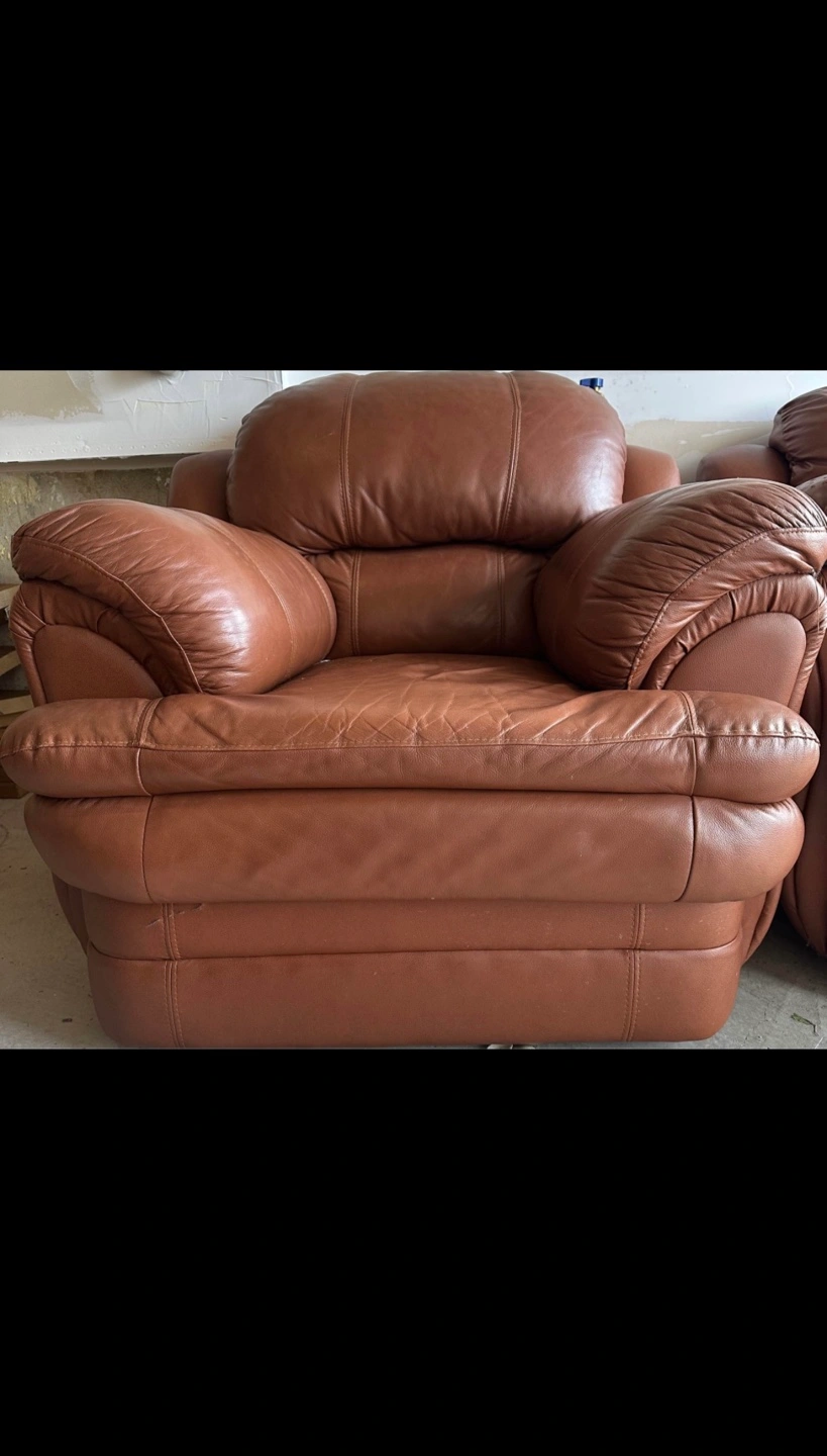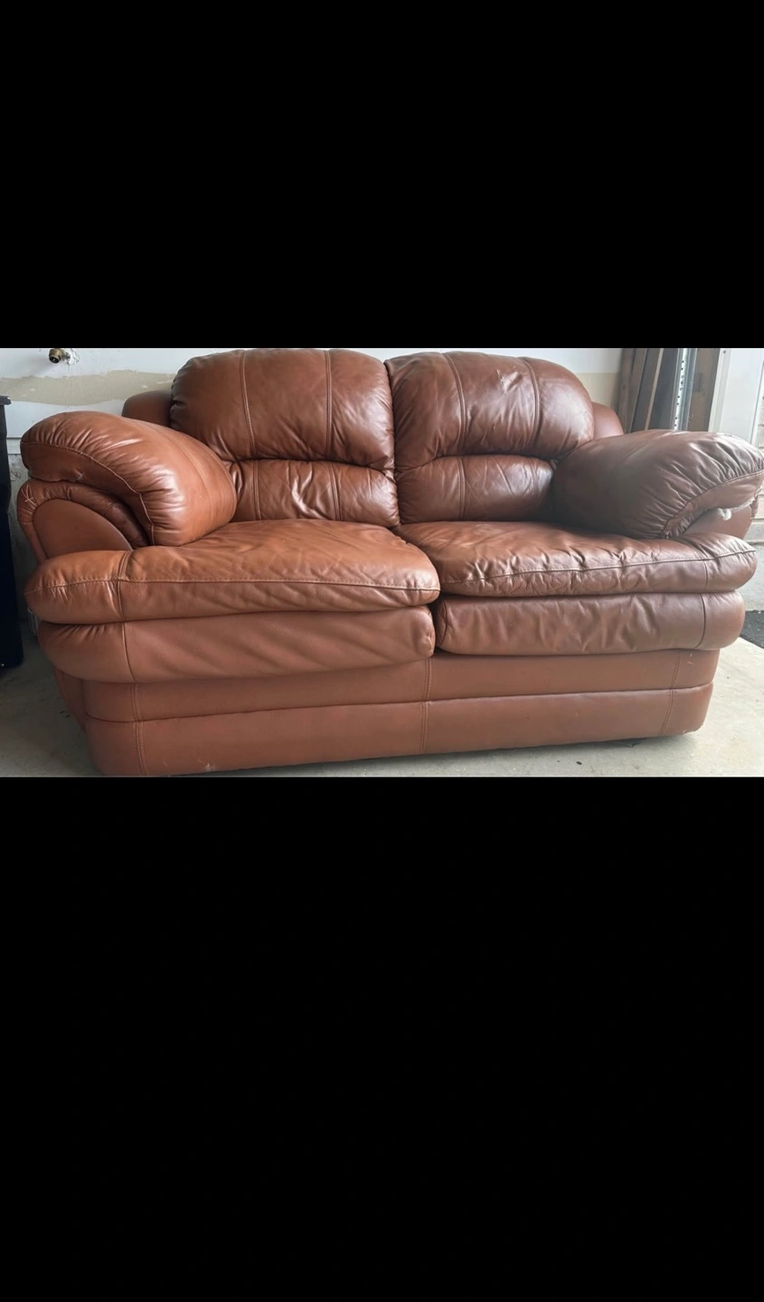 3-piece leather living room set for sale — needs to go ASAP! Includes: • 1 leather sofa • 1 loveseat (note: has a small tear) • 1 armchair ✅ Genuine leather ✅ Very comfortable ✅ In good condition ✅ Smoke-free & pet-free home 📍 Located in Barrie– First come, first served 🚗 Must be picked up – No holds. 💵 Cash only for payment. Perfect for a home, rental unit, or basement. Priced to sell quickly! 📩 Send your offer – open to reasonable negotiations.