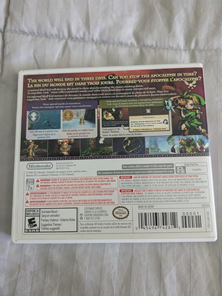 Selling The Legend of Zelda: Majora's Mask 3D for the Nintendo 3DS! Rated E10+ for Everyone 10 and older. From smoke and pet free home.