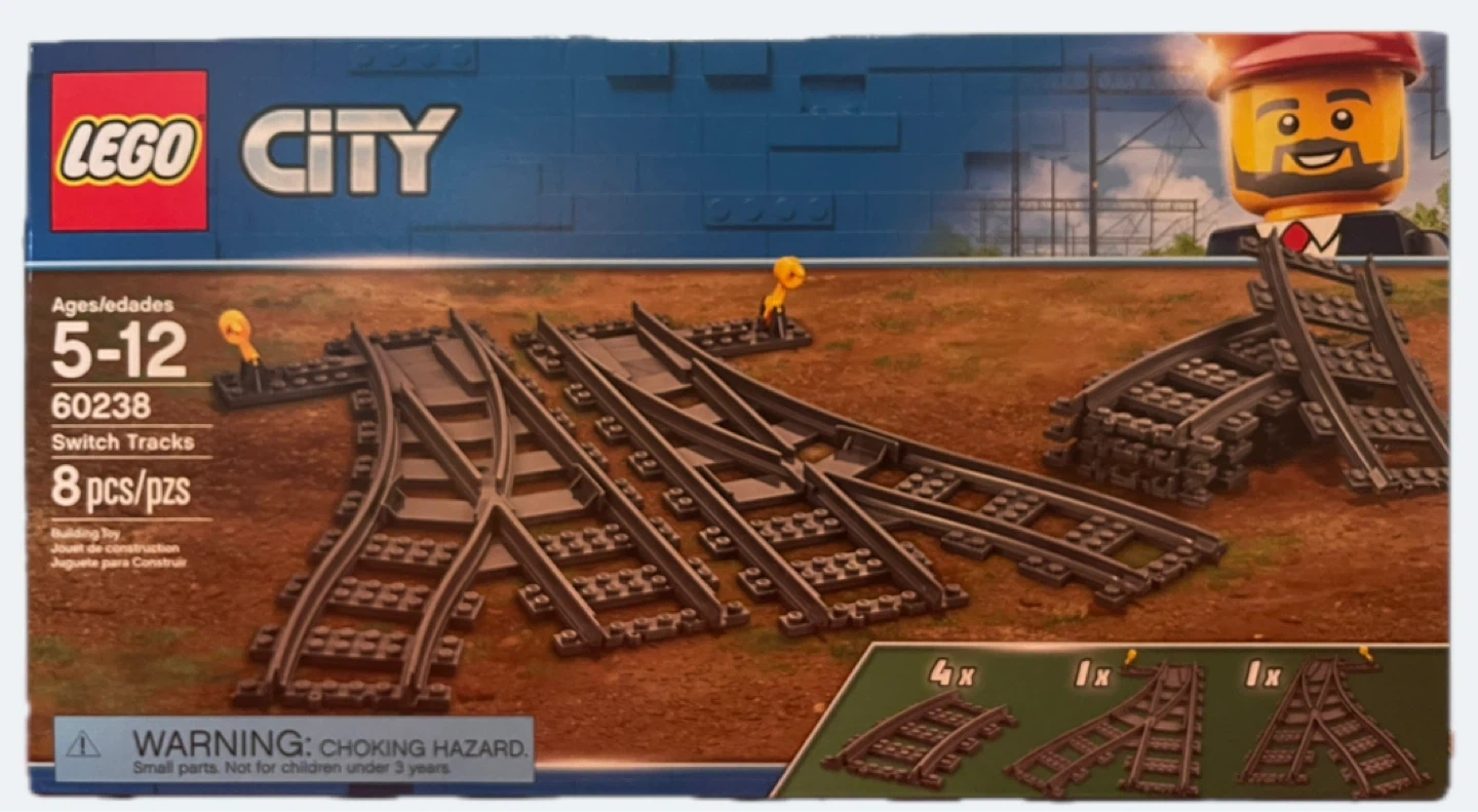 Selling a LEGO City 60238 Switch Tracks set! It's perfect for expanding your LEGO train setup. This set is recommended for ages 5-12 and includes 8 pieces to enhance your railway adventures. Get ready to build and create!