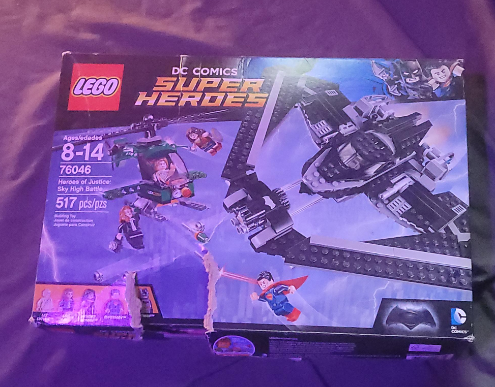 Selling a LEGO DC Comics Super Heroes set, number 76046. It's the Heroes of Justice: Sky High Battle set. Suitable for ages 8-14 and includes 517 pieces