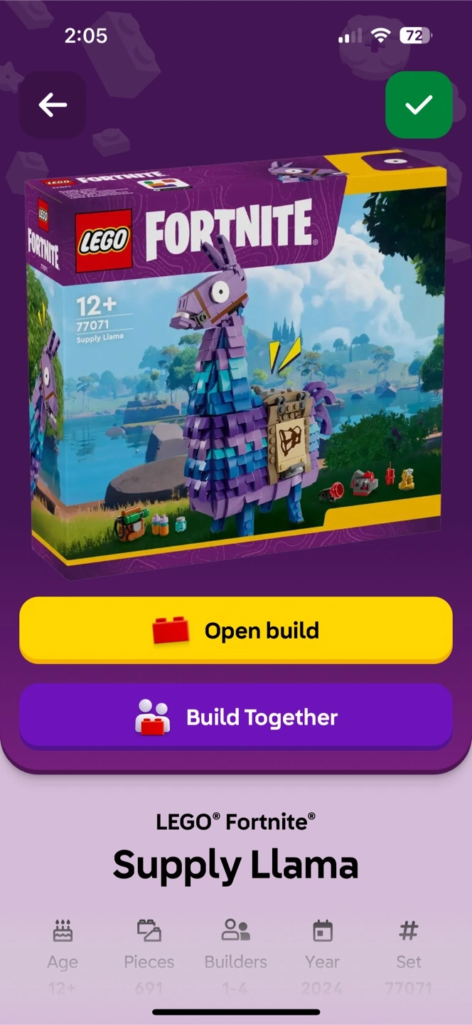 LEGO Fortnite Supply Llama set (77071) set is perfect for builders aged 12 and up. It contains 691 pieces and is designed for 1-4 builders. Released in 2024, it's a fun and engaging build for Fortnite and LEGO fans alike. Has been built and taken apart, nicely bagged. Comes with instructions and box