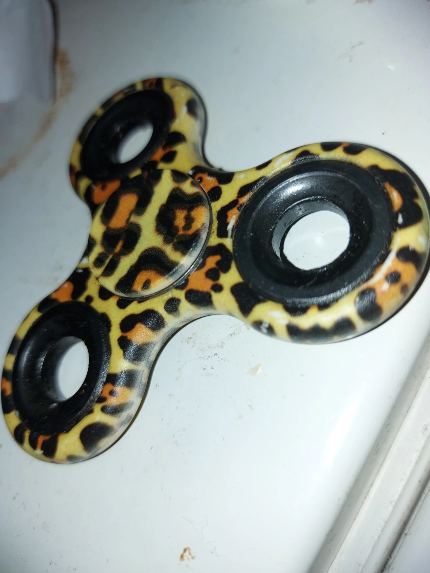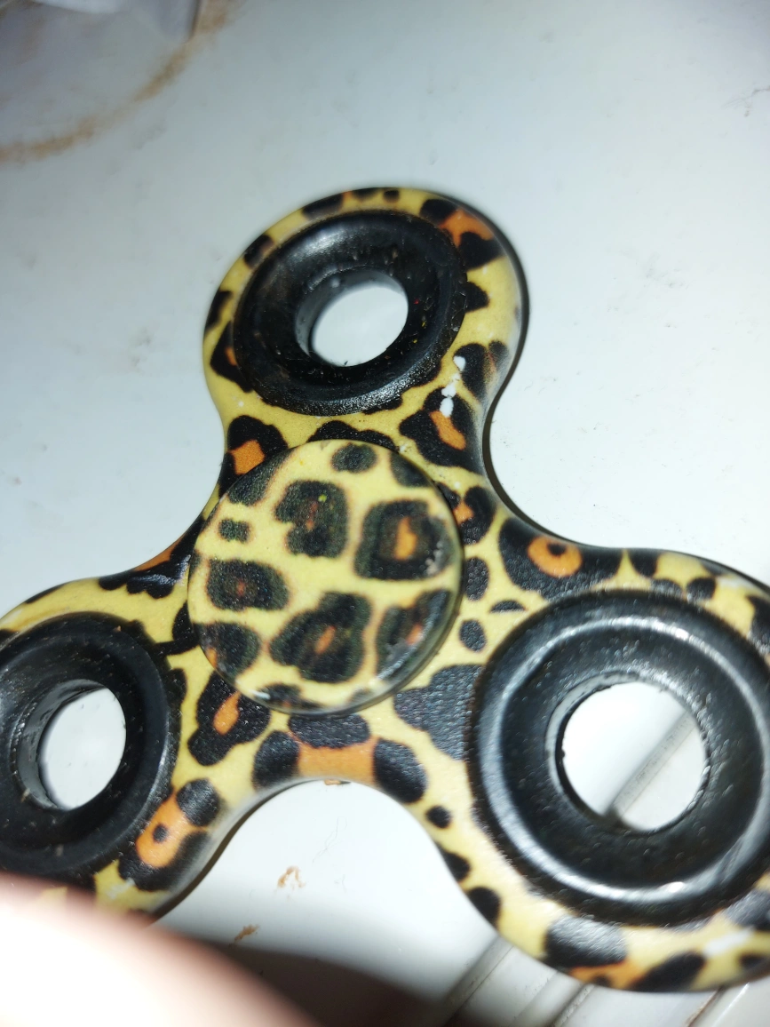 Here's a fun fidget spinner with a cool leopard print design! It's perfect for keeping your hands busy and relieving stress