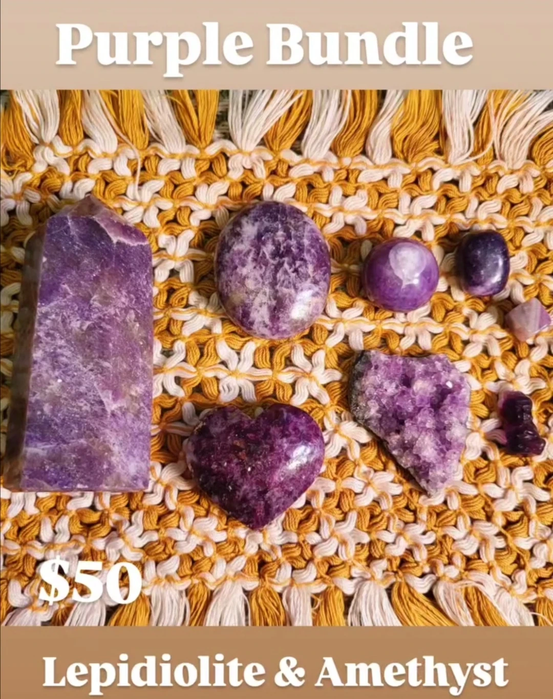 Selling a beautiful purple bundle of Lepidolite & Amethyst crystals! This set includes a variety of shapes and sizes. Perfect for crystal enthusiasts or anyone looking to add some calming energy to their space