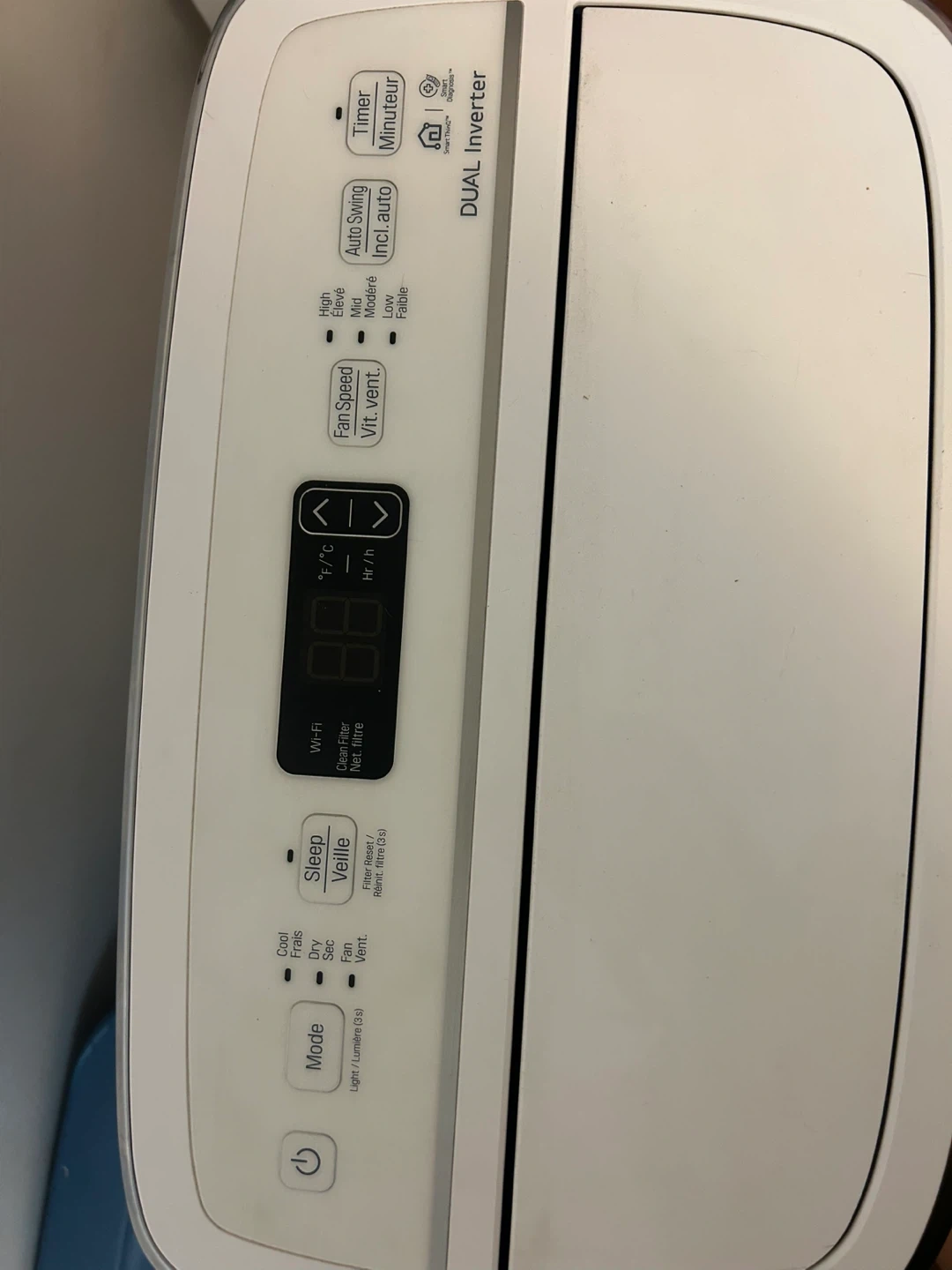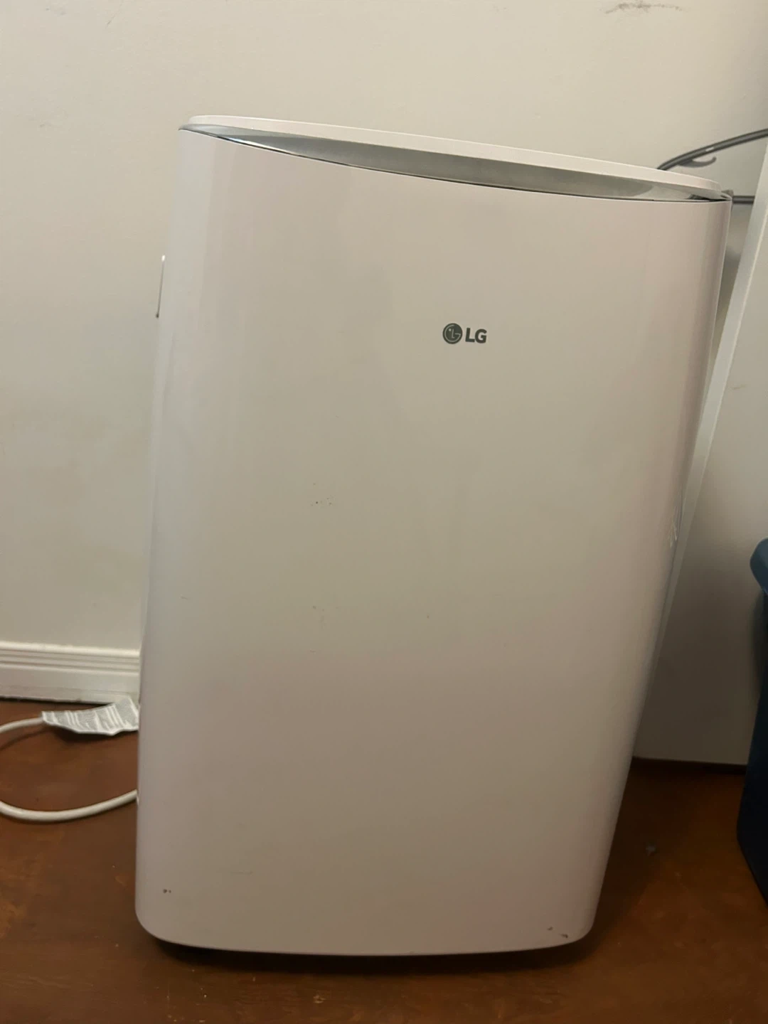 Selling an LG portable air conditioner in white. It's in great shape and ready to keep you cool! Features include: - Dual Inverter - Timer - Auto Swing - Fan Speed settings - Sleep mode - Mode settings Missing hose(still works with out it)