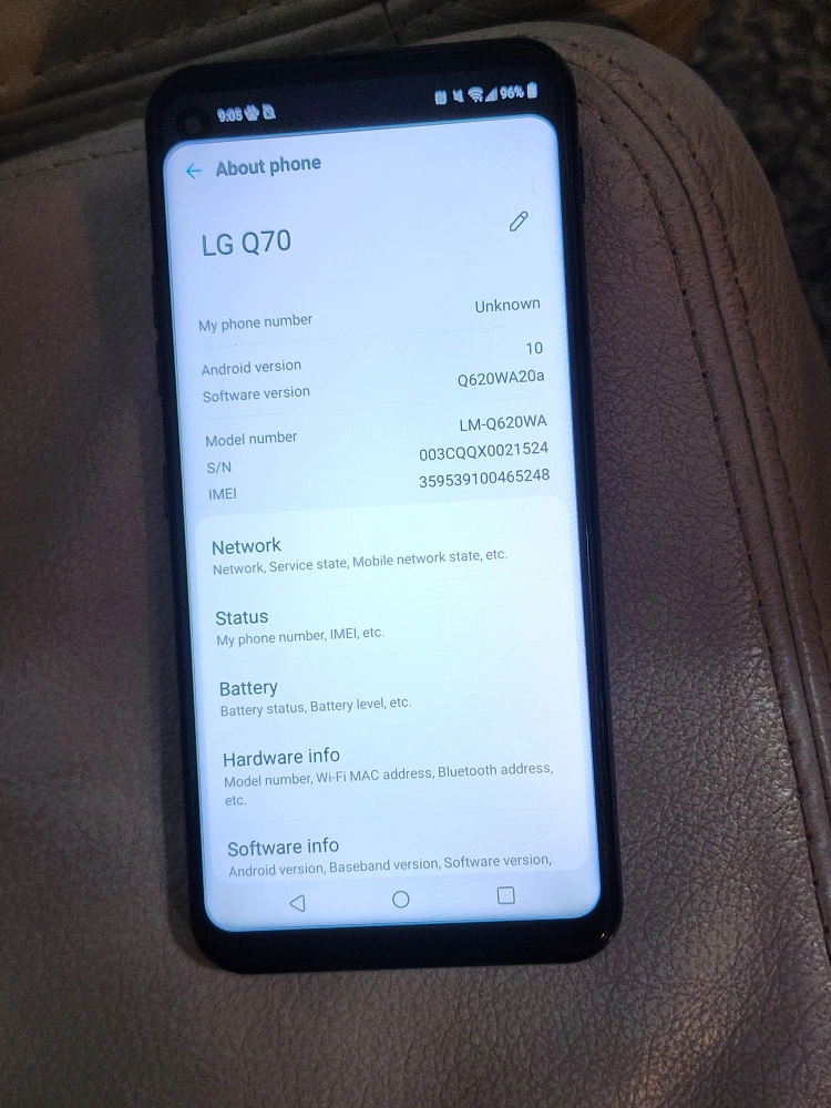 Selling an LG Q70 smartphone. It's in great condition and ready for a new owner! The model number is LM-Q620WA. It runs on Android 10.