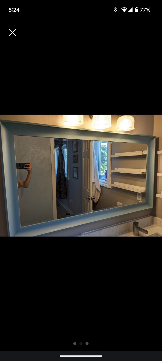 Large rectangular mirror, light blue frame. Good for bathroom or vanity. Includes mirror only. 29.5 inches by 52.5 inches