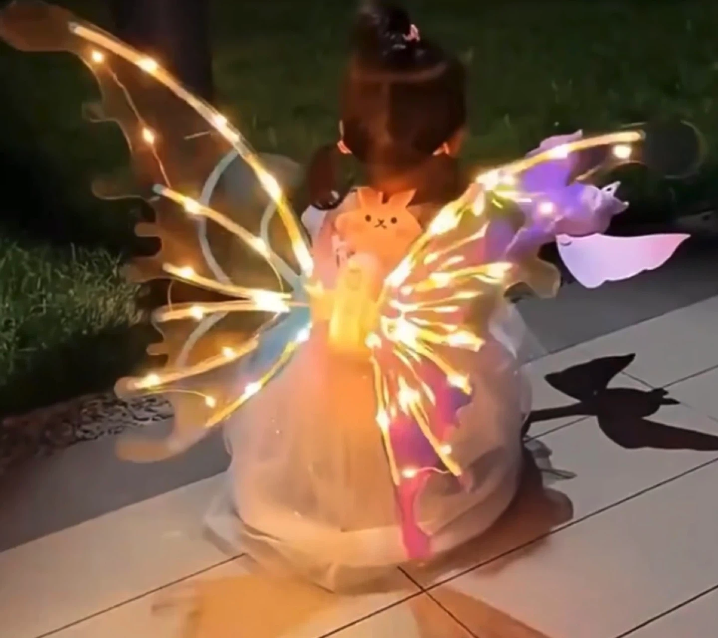 These light-up fairy wings are perfect for dress-up or Halloween! They feature beautiful lights and are sure to make any child feel like a real fairy Flapping features & Music ( on/off ) Adjustable straps