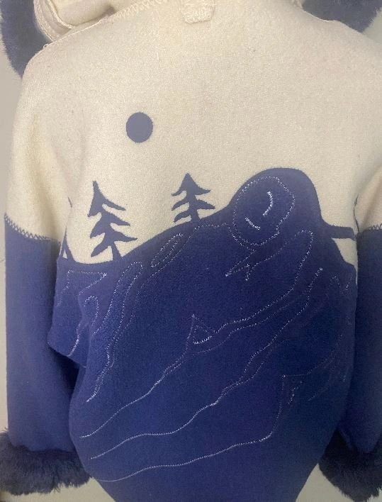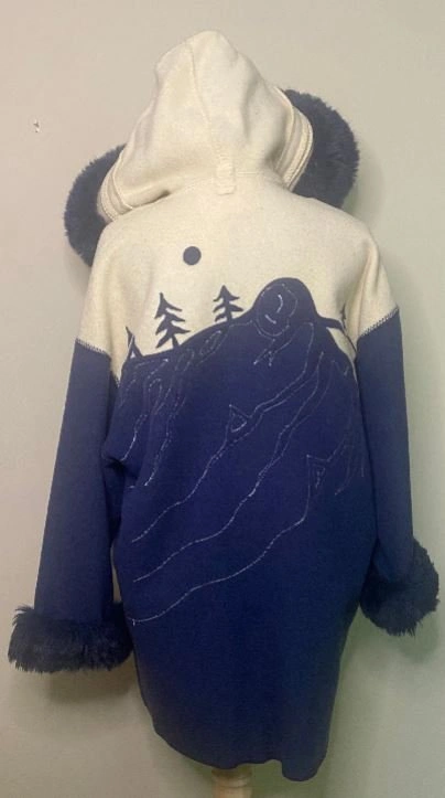 The beautiful blue and cream color on this Linda Lundstrom Laparka Indigenous Inspired Women’s Wool Coat provides you with a classic color palette that stands above the crowd. The Indigenous inspired nature design is both surreal and sophisticated with it's representation of a moonlit forest. The all wool made Linda Lundstrom coat can be worn during so many different occasions including a casual outing, outdoor sporting event or a more formal setting when you want to add some color and style to your wardrobe. Although pre-owned, this small Linda Lundstrom Laparka Indigenous Inspired Women’s Wool Coat is in fantastic condition with normal pilling seen in an item of this vintage. For measurements of this Linda Lundstrom Laparka Wool Coat, please see the picture included in our listing. Although pre-owned, this Linda Lundstrom Laparka Indigenous Inspired Women’s Wool Coat is in excellent condition with no rips, stains or smell. Local pickup is in Etobicoke near Islington and The Westway.
