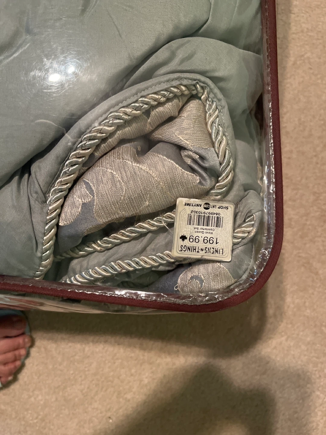 Selling a Linens & Things queen-size comforter set. It comes in its original packaging. The original price was $199.99 Color is Teal Green