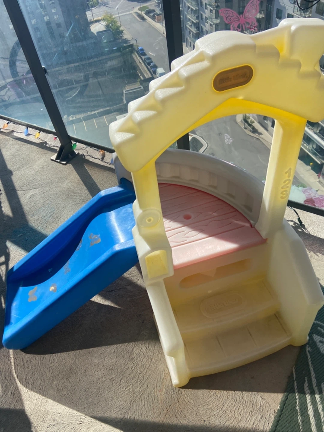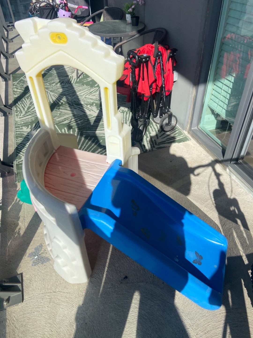 Selling a Little Tikes slide for kids! It's in great shape and ready for a new home. Features a blue slide and yellow steps. Perfect for little ones to have some fun!