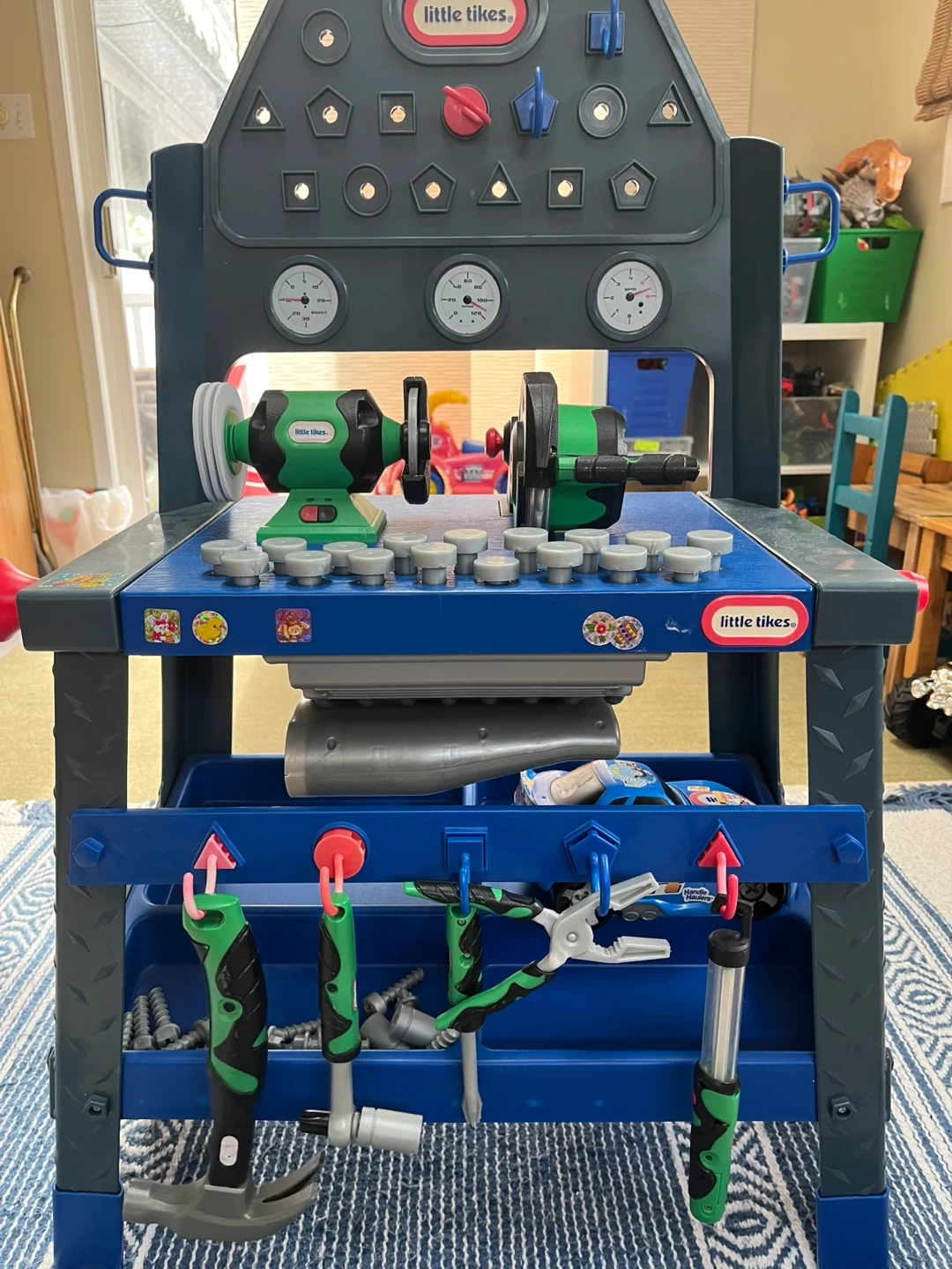 Little Tikes Tough Workbench ready for your little builder! This workbench is great for creative play and developing fine motor skills. It comes with a variety of tools and accessories to keep your child entertained for hours. Perfect for kids who love to build and fix things!