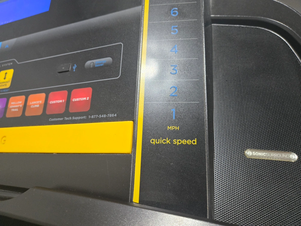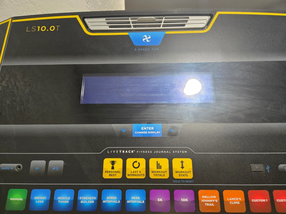 Selling a Livestrong LS10.0T treadmill, perfect for getting your steps in at home! It features a 3-speed fan to keep you cool during your workouts. The console displays workout stats, and there are several preset programs like 'Mellow Johnny's Trail' and 'Lance's Climb' to keep things interesting. It also has Sonic Surround speakers for your workout tunes.