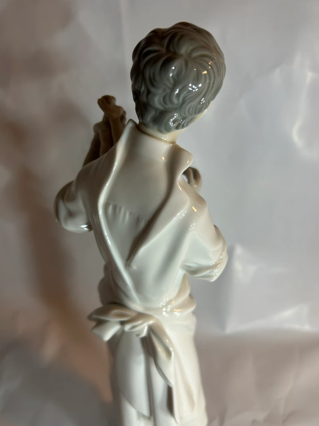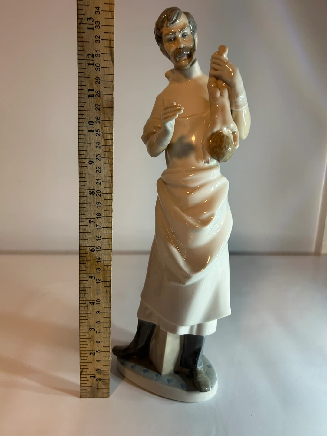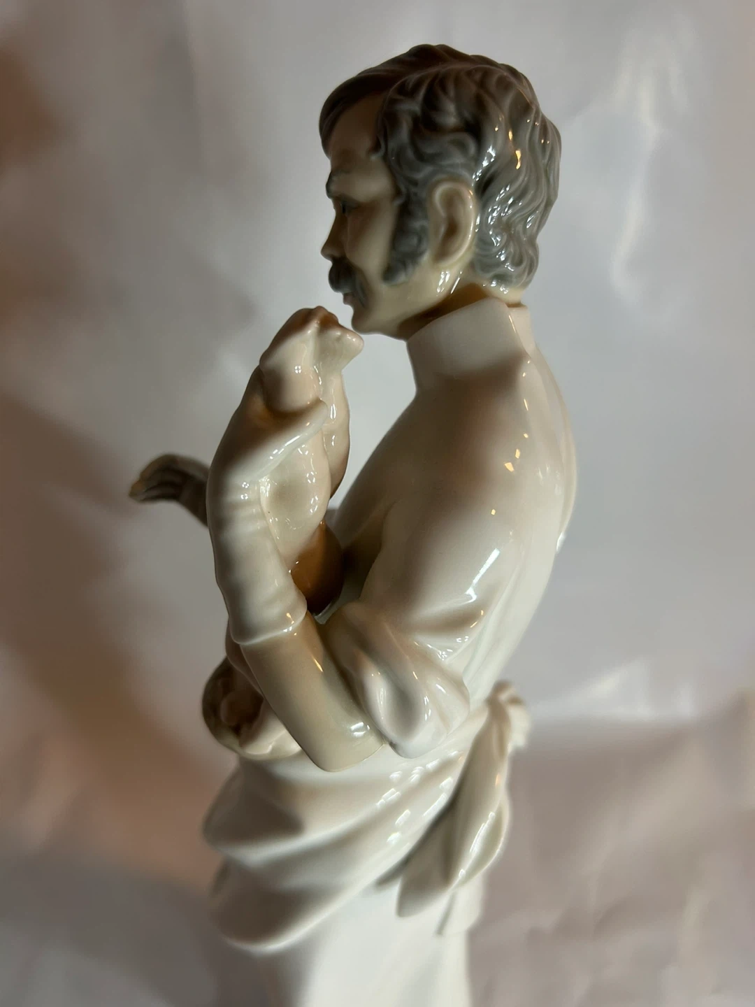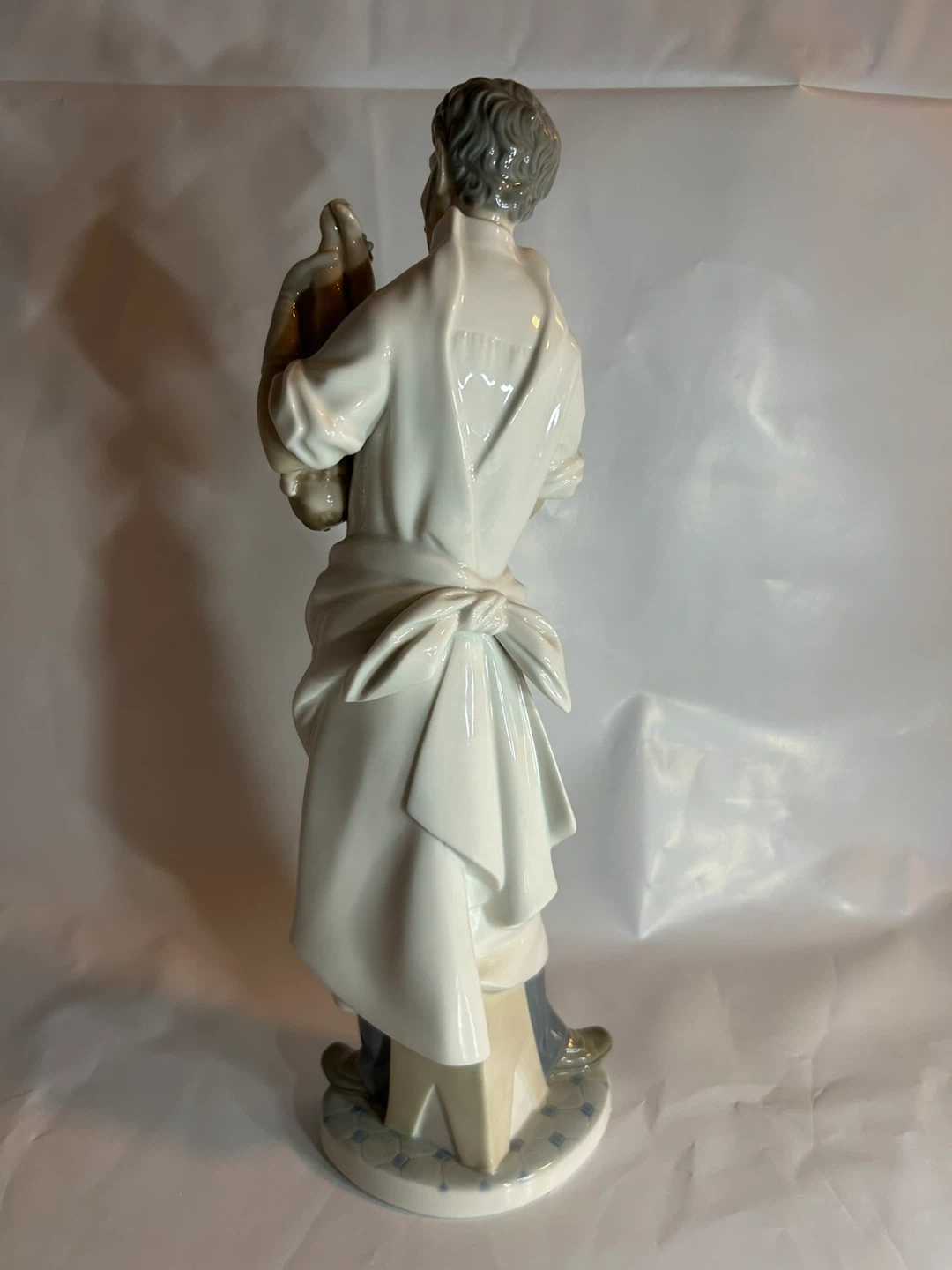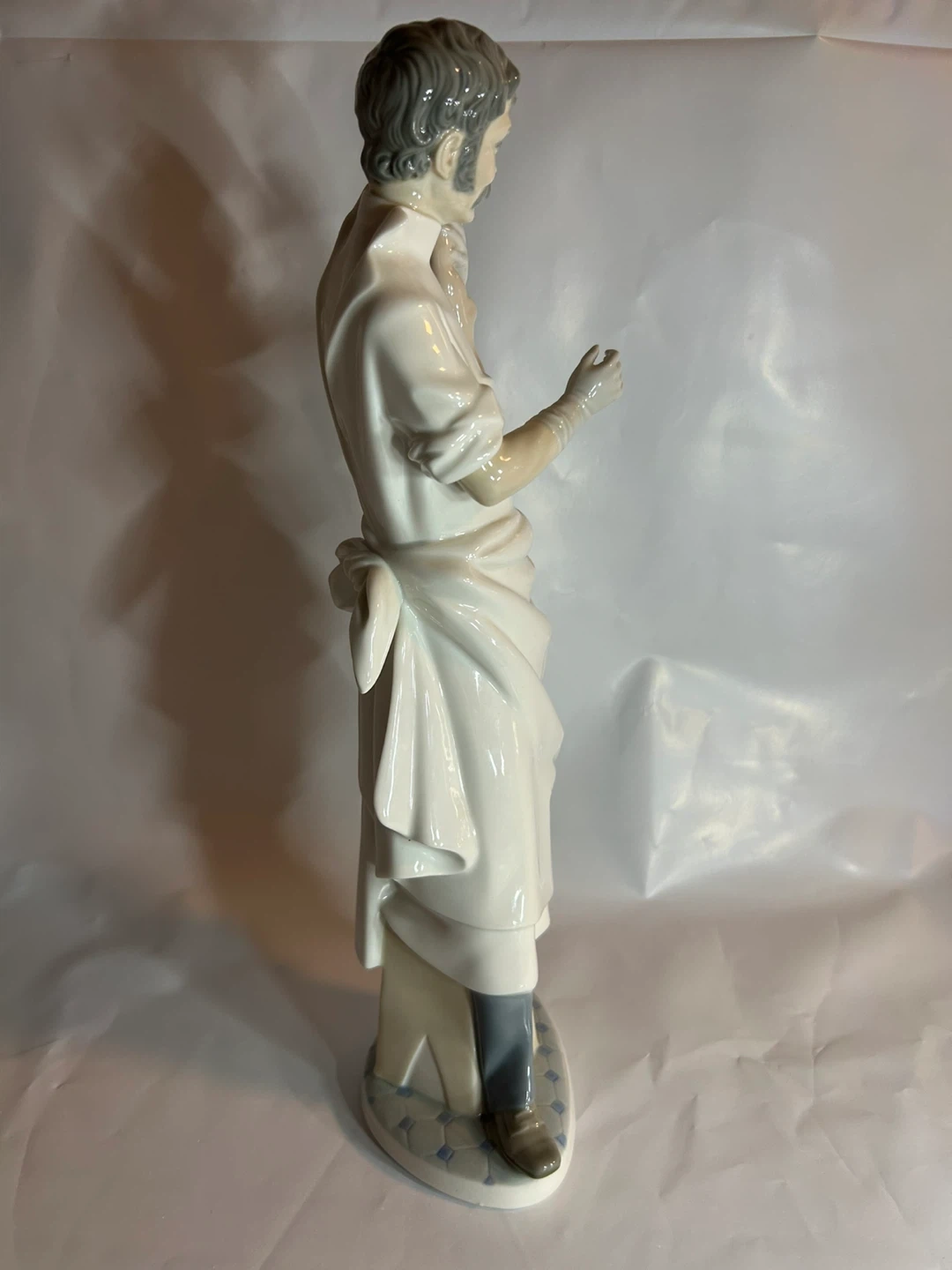 This is a Lladro figurine of a doctor holding a newborn baby. It's in great condition and would be a lovely addition to any collection or nursery!