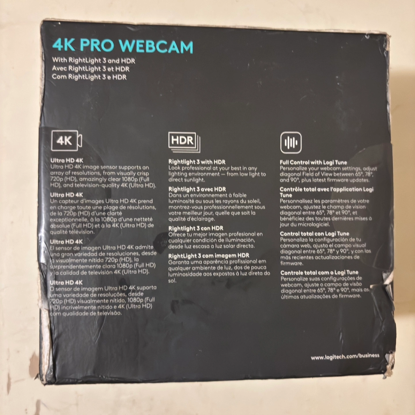 Selling a new Logitech 4K Pro Webcam. This webcam has RightLight 3 and HDR to look professional in any lighting environment. It also features full control with Logi Tune to personalize your webcam settings. Get ultra HD 4K image sensor support with amazing clarity!
