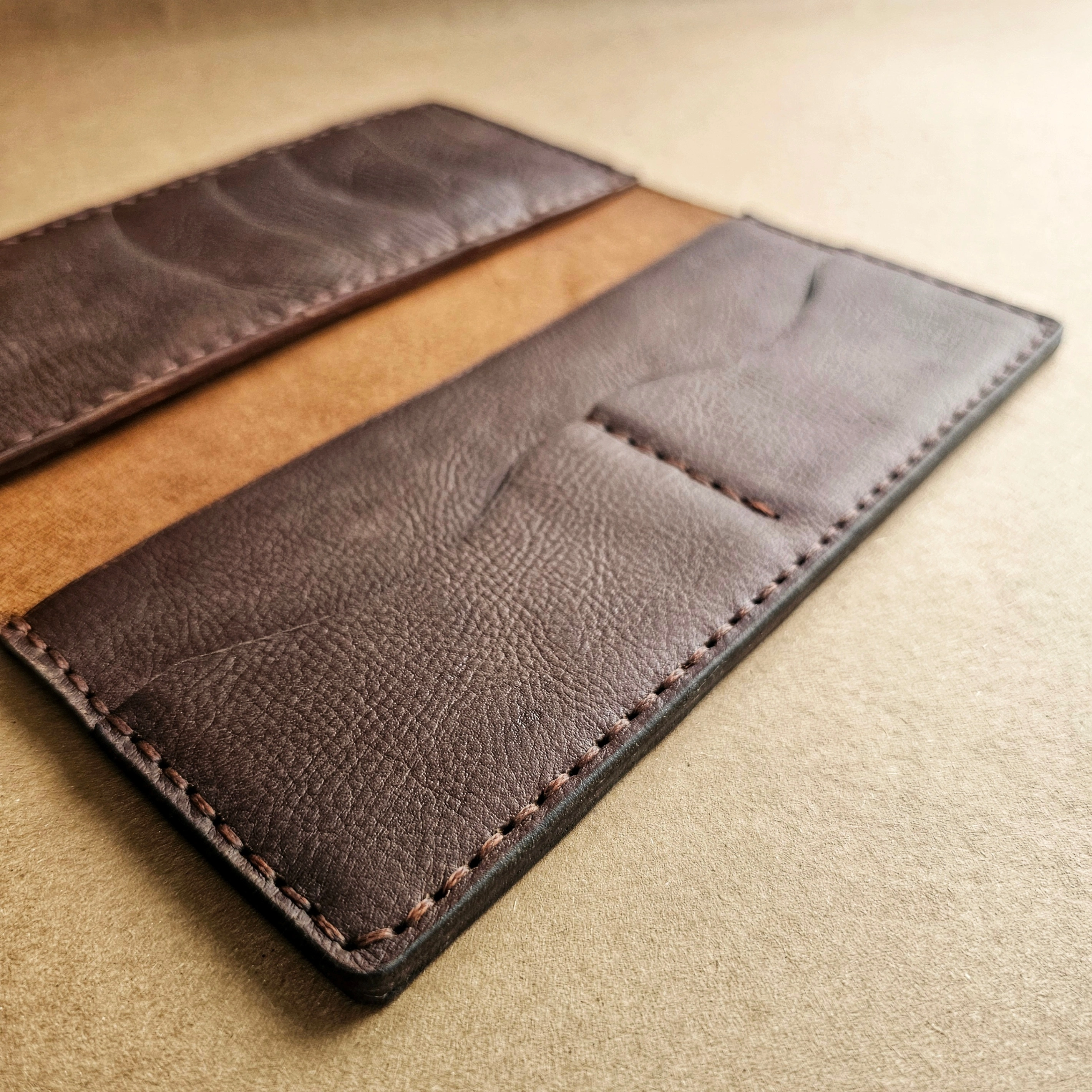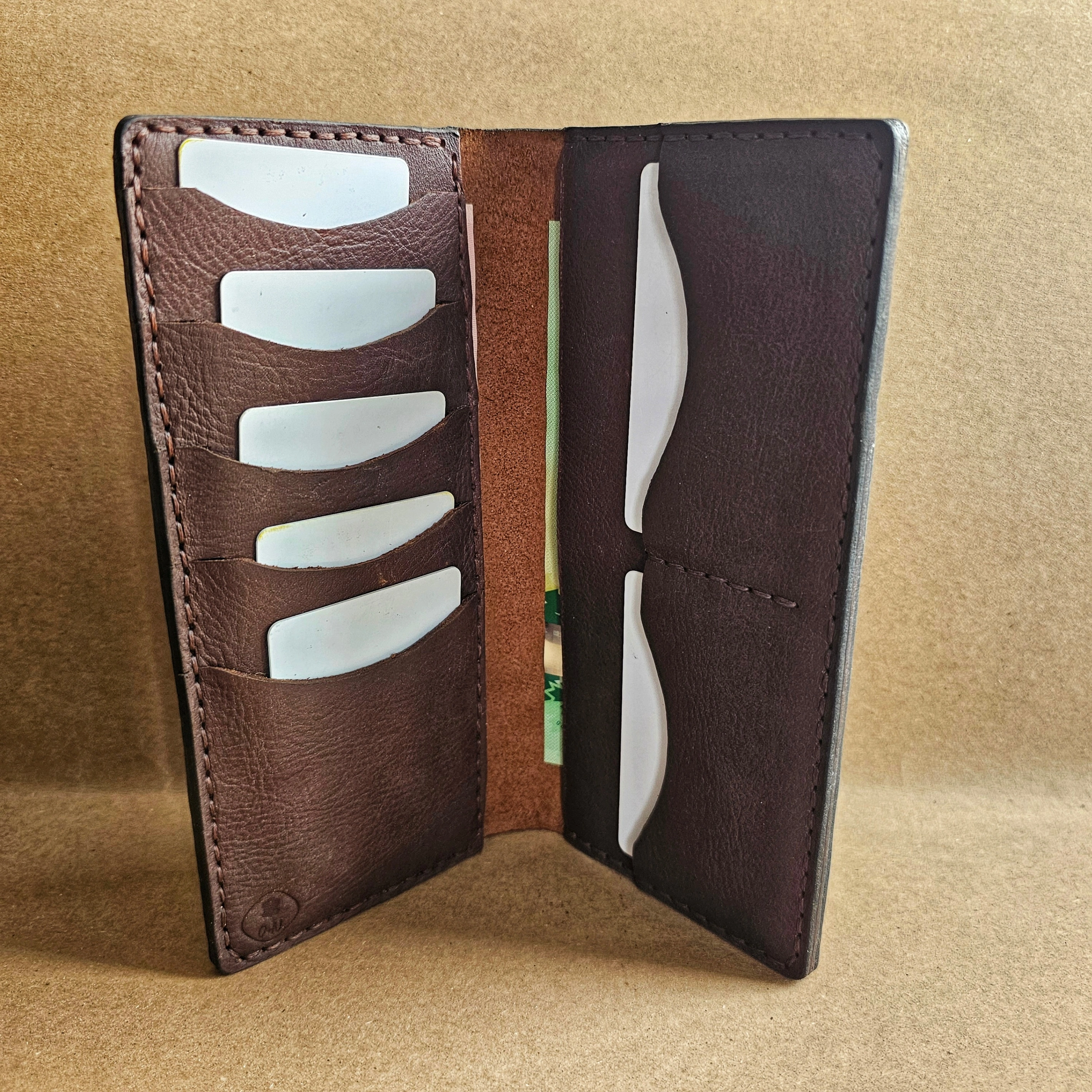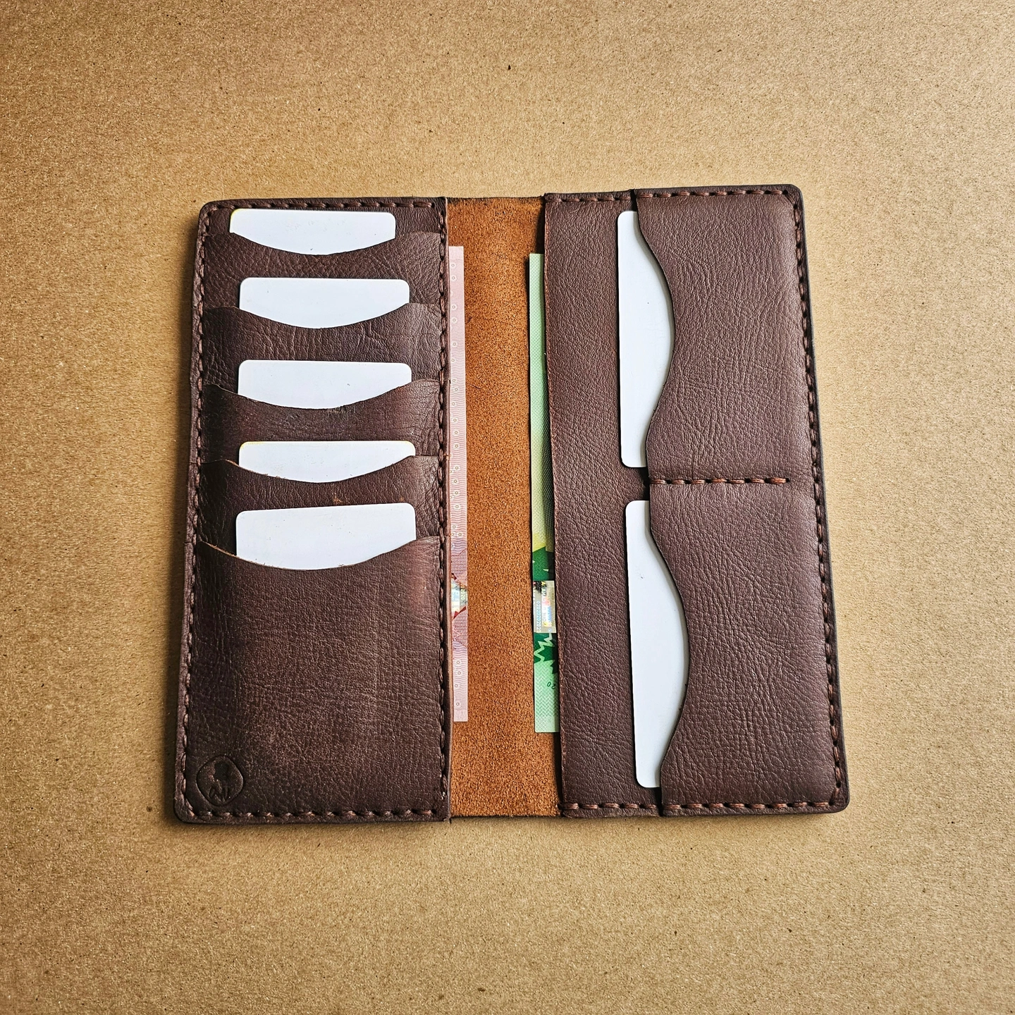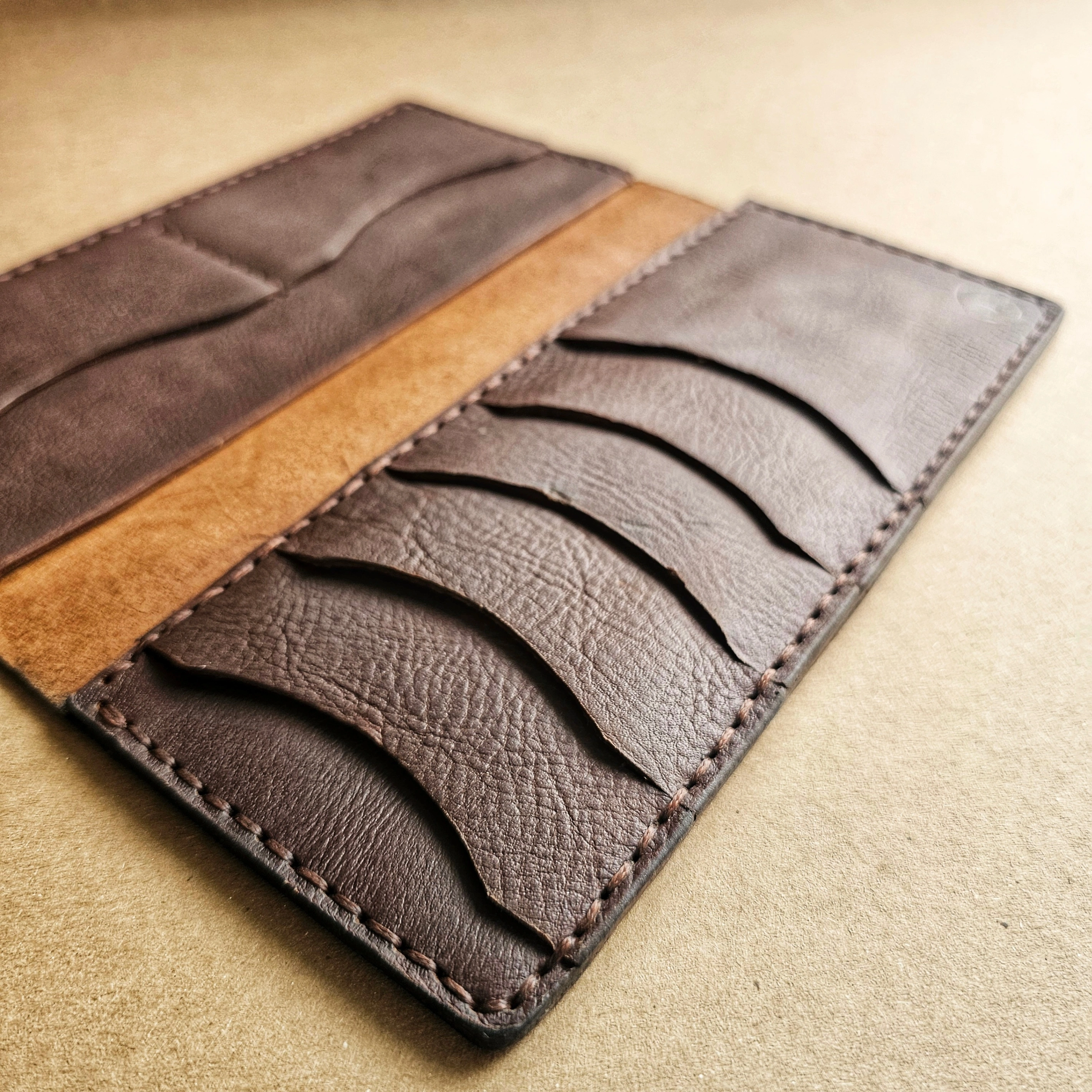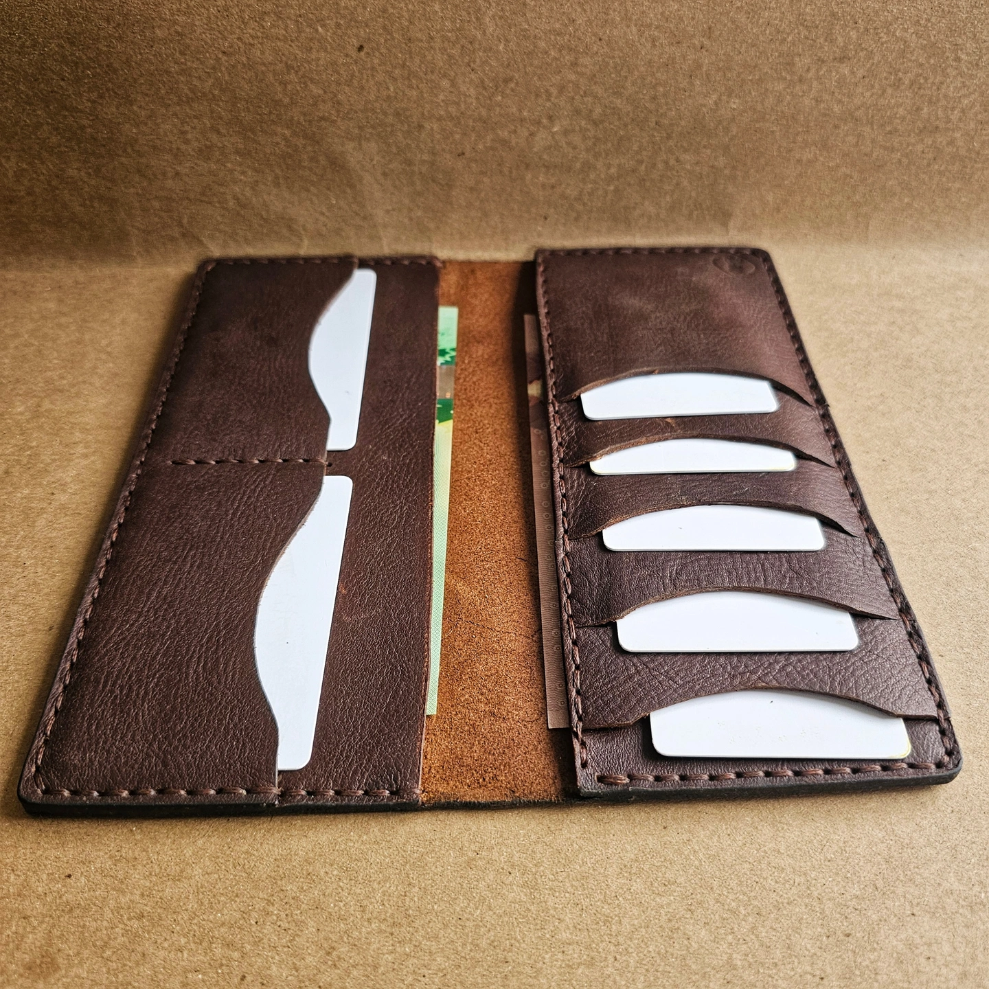 Proudly handcrafted with care and passion from our small family workshop. Designed for those who value both style and function, this handmade bifold wallet is crafted from premium oil-tanned cowhide leather. Known for its durability and rich character, this leather develops a beautiful patina over time and is naturally resistant to wear. With space for up to 17 cards, this wallet is perfect for those who carry more. It measures 3.5 inches by 7.5 inches and features: 5 card slots on the left 2 card slots on the right 2 full-length bill pockets for cash or receipts Thoughtful Gift: An excellent choice for gifting during the holiday season, Christmas, birthday, Mother's Day, Father's Day, or any other occasion.